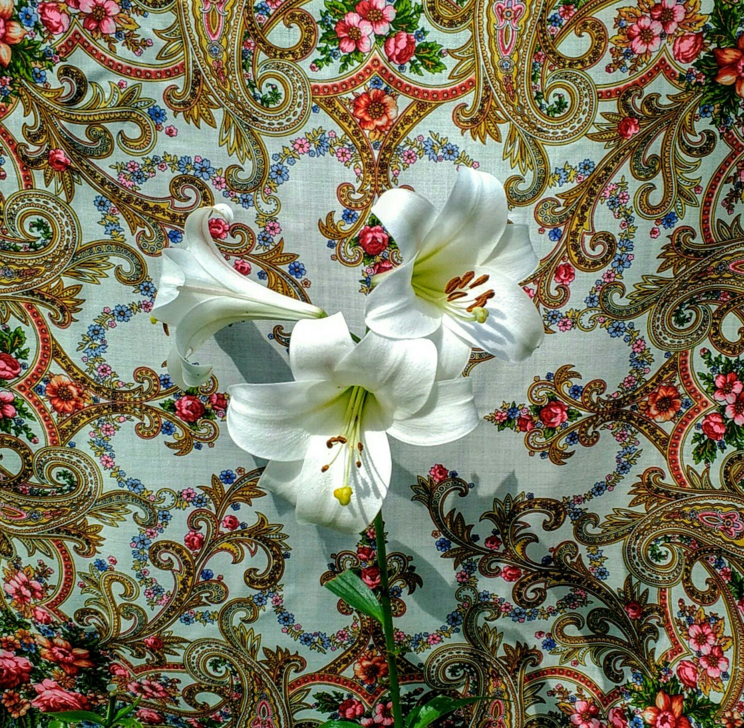 Да, всегда, когда живые цветы с платочными перекликаются, получается интересно, на мой взгляд ))
