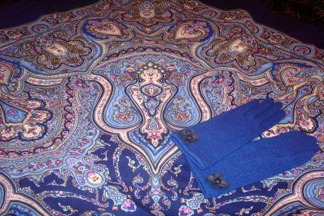 Всё - таки чувствуется, что у каждого времени свои колористические предпочтения. Это ощущается и по платкам, и по тканям.