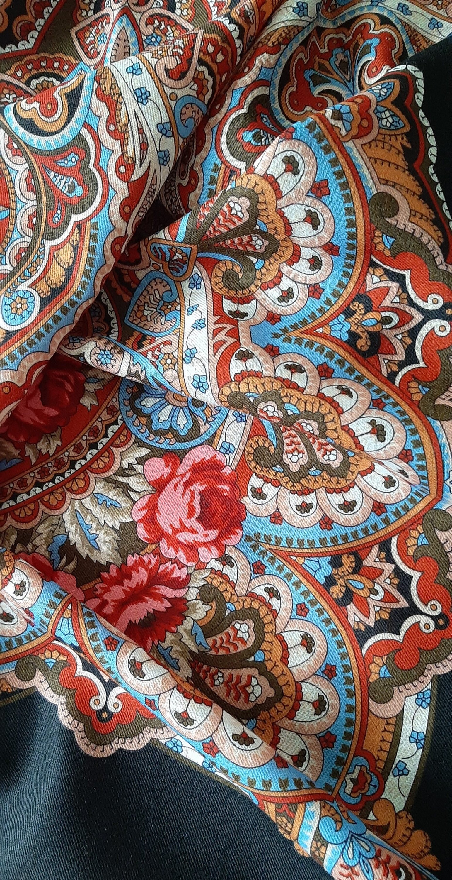 Платок шелковый (атлас) "Хохломские узоры", вид 18, 89х89 см