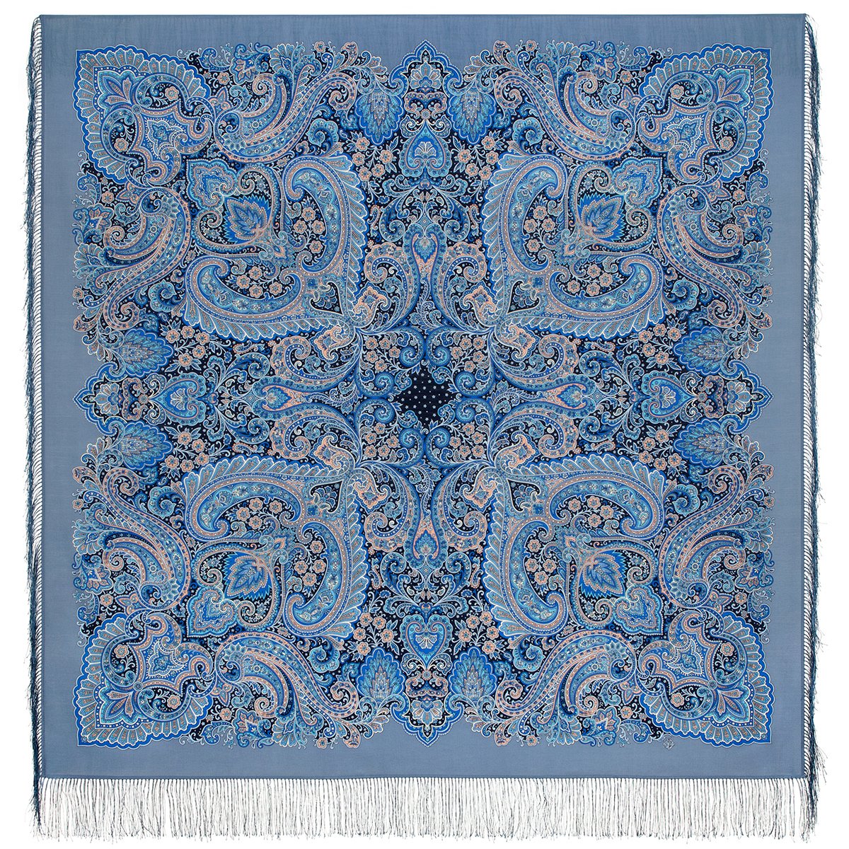 Платок шерстяной с шелковой бахромой, 125х125 см