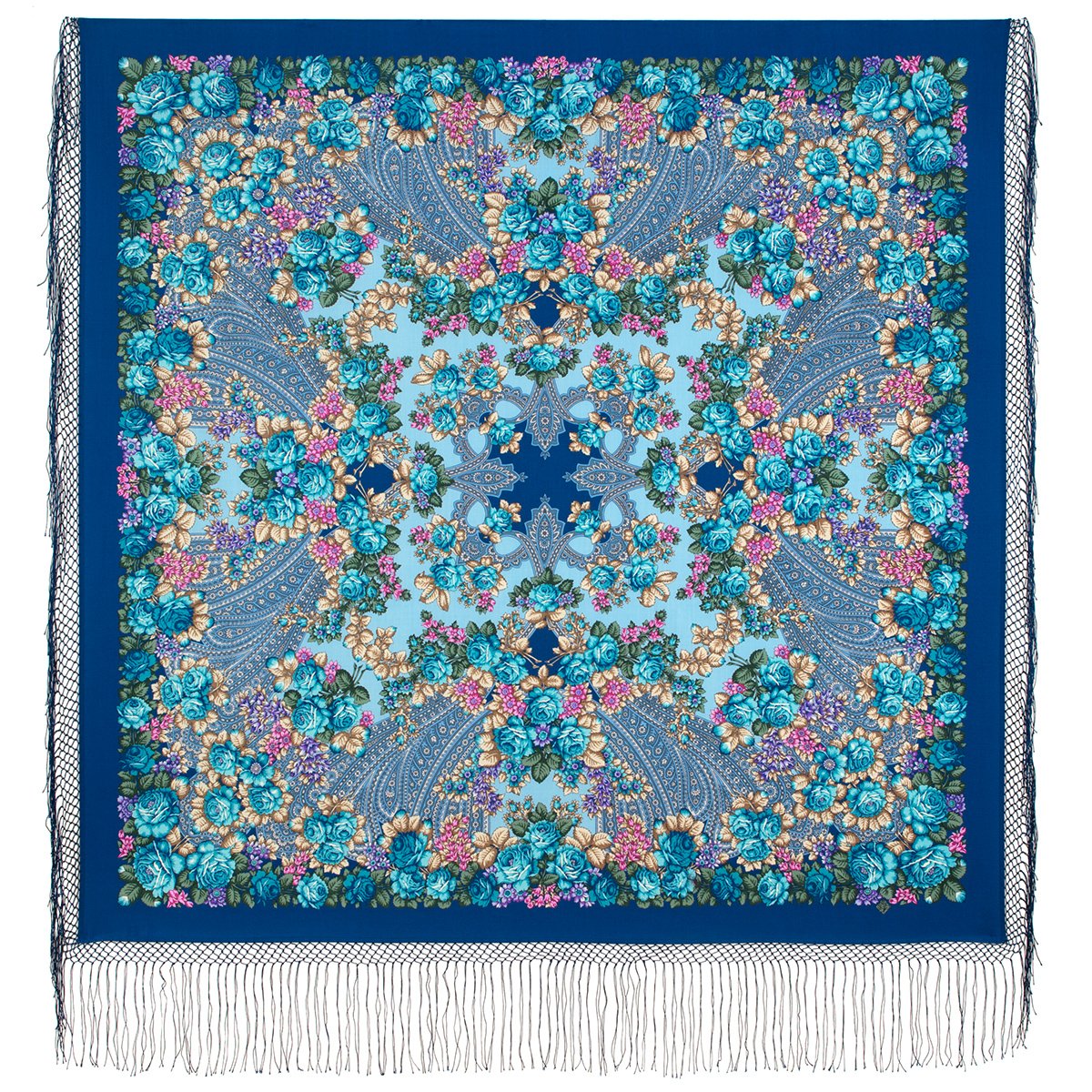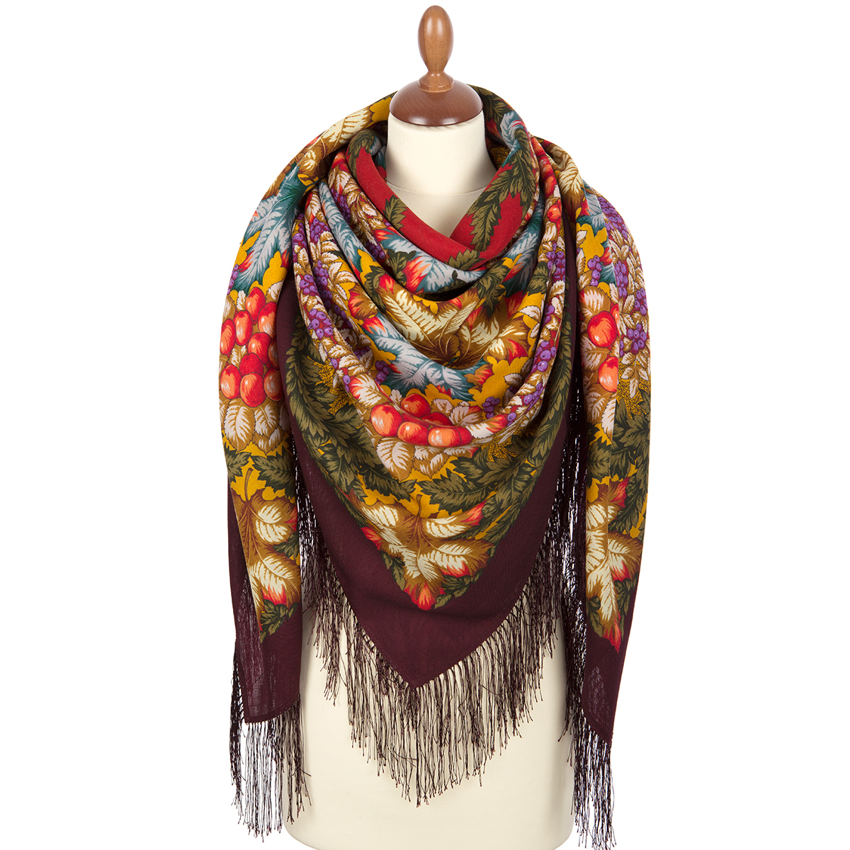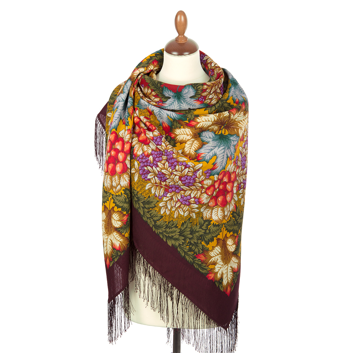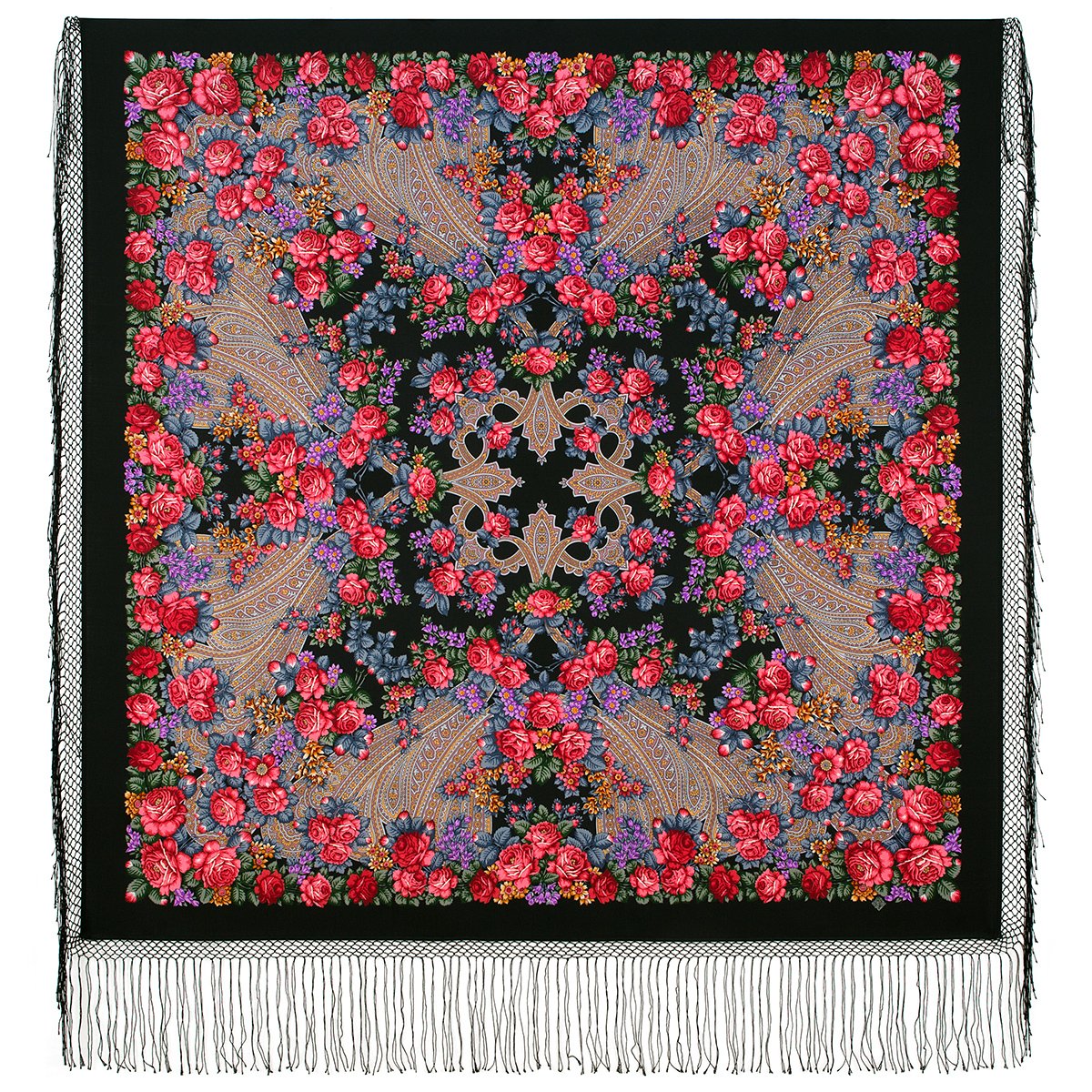 Платок из уплотненной шерстяной ткани с шелковой бахромой, 148х148 см