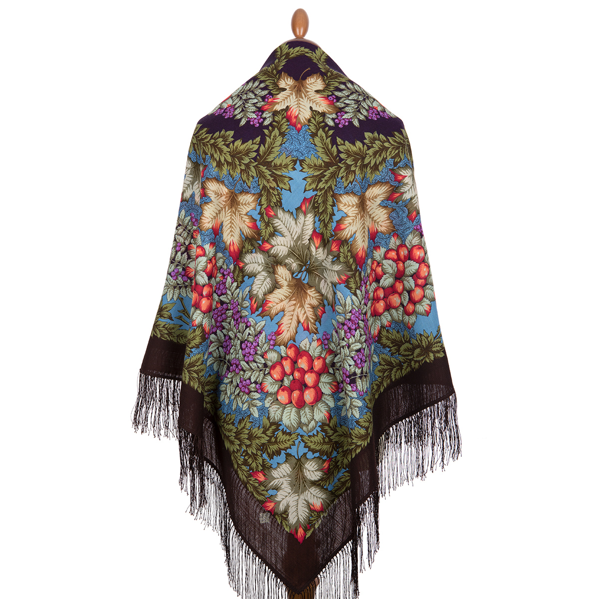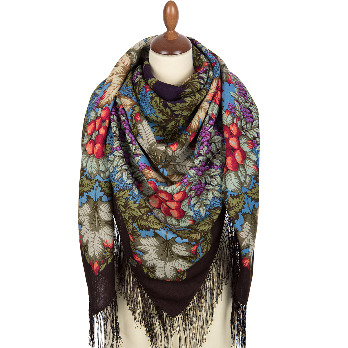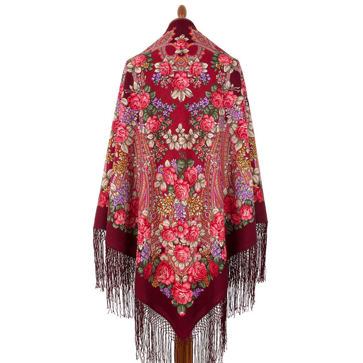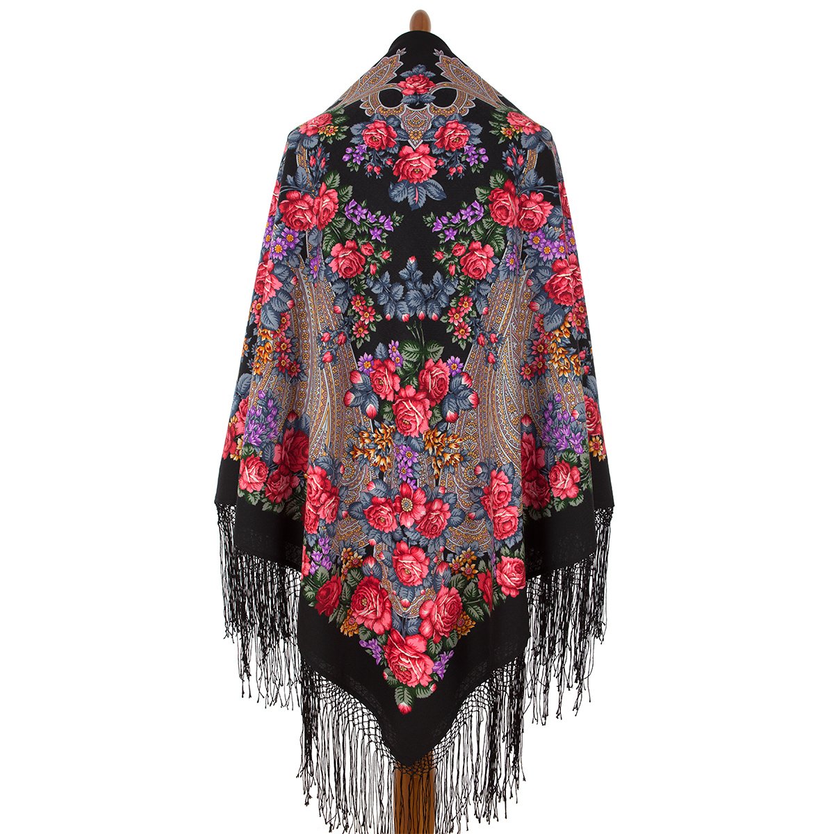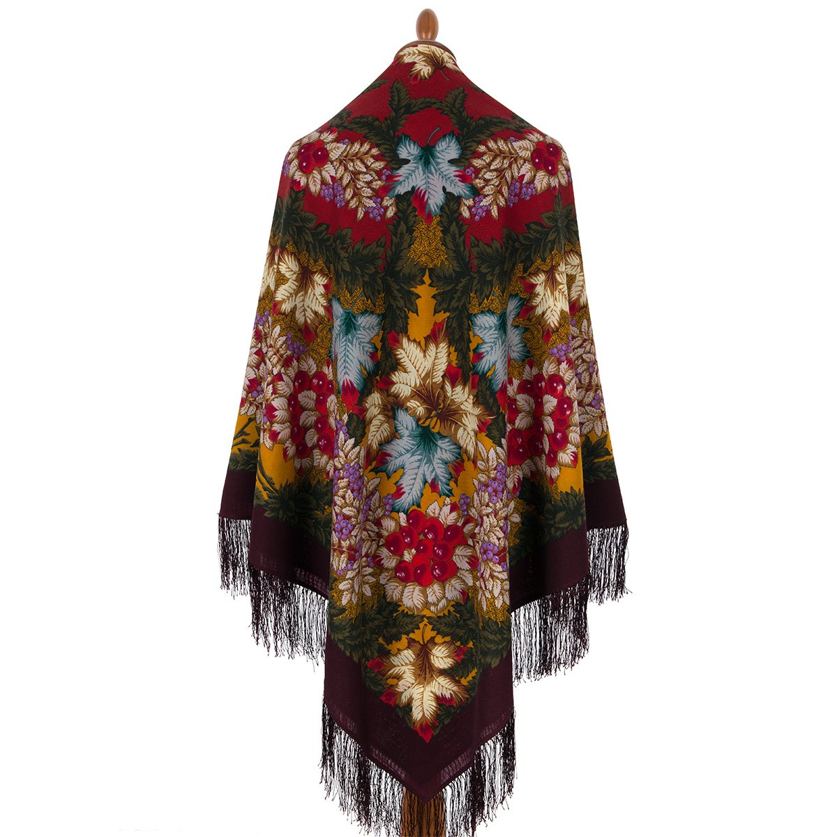 Платок из уплотненной шерстяной ткани с шелковой бахромой, 148х148 см