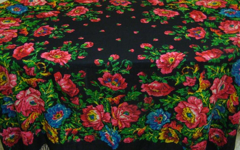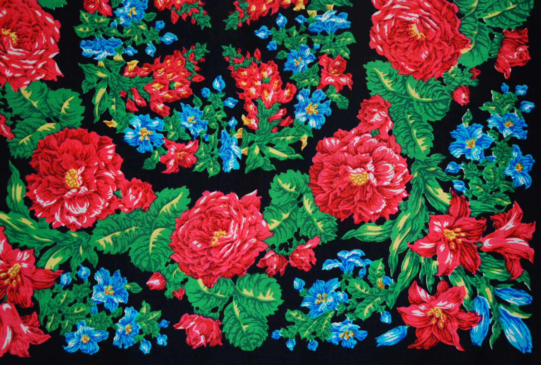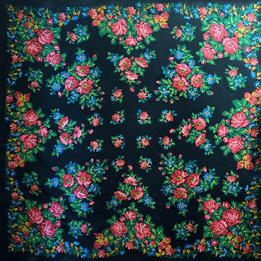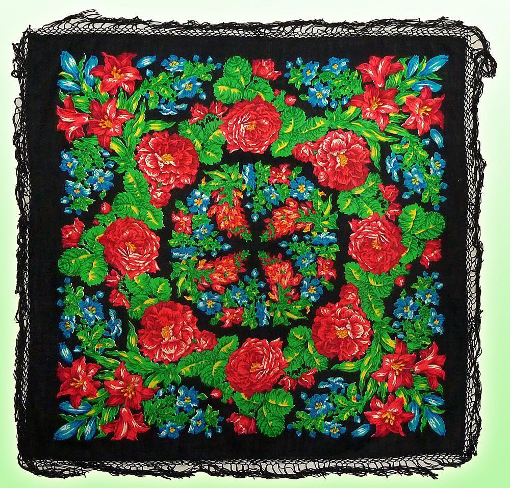 Шаль 150х150 с цветочным узом из очень крупных маков