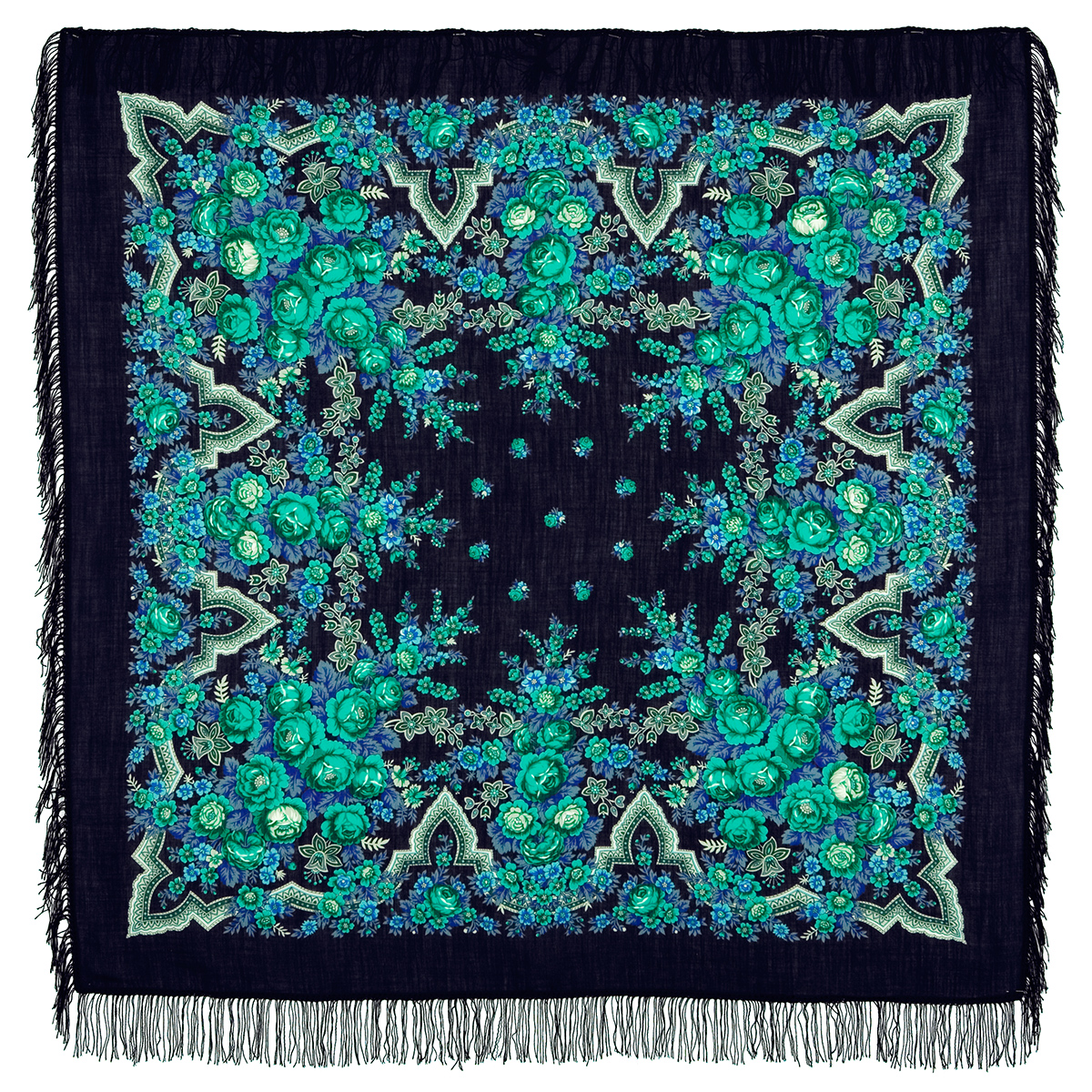 Шаль 150х150, 146х146 с популярным орнаментально-цветочным узором с "луковками"