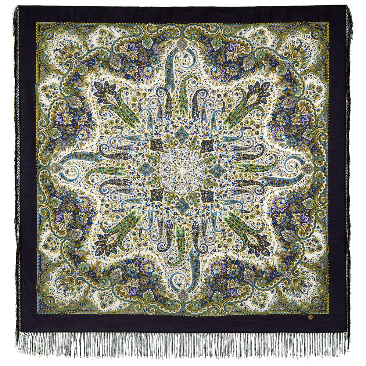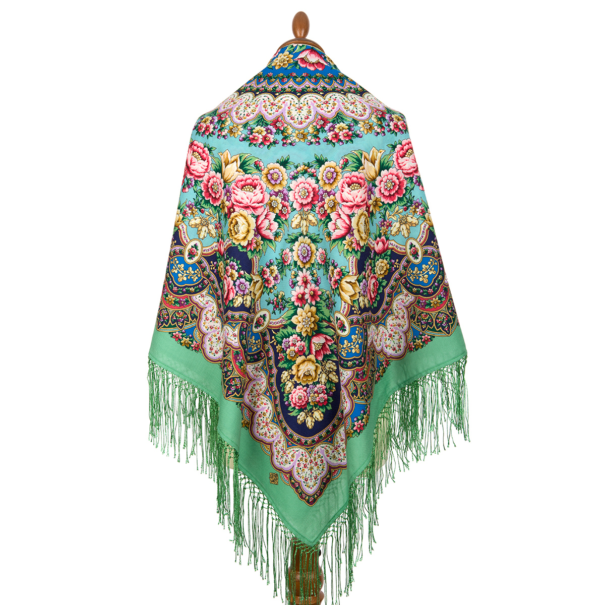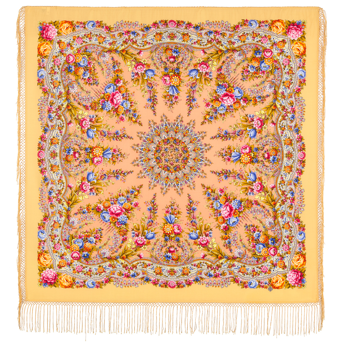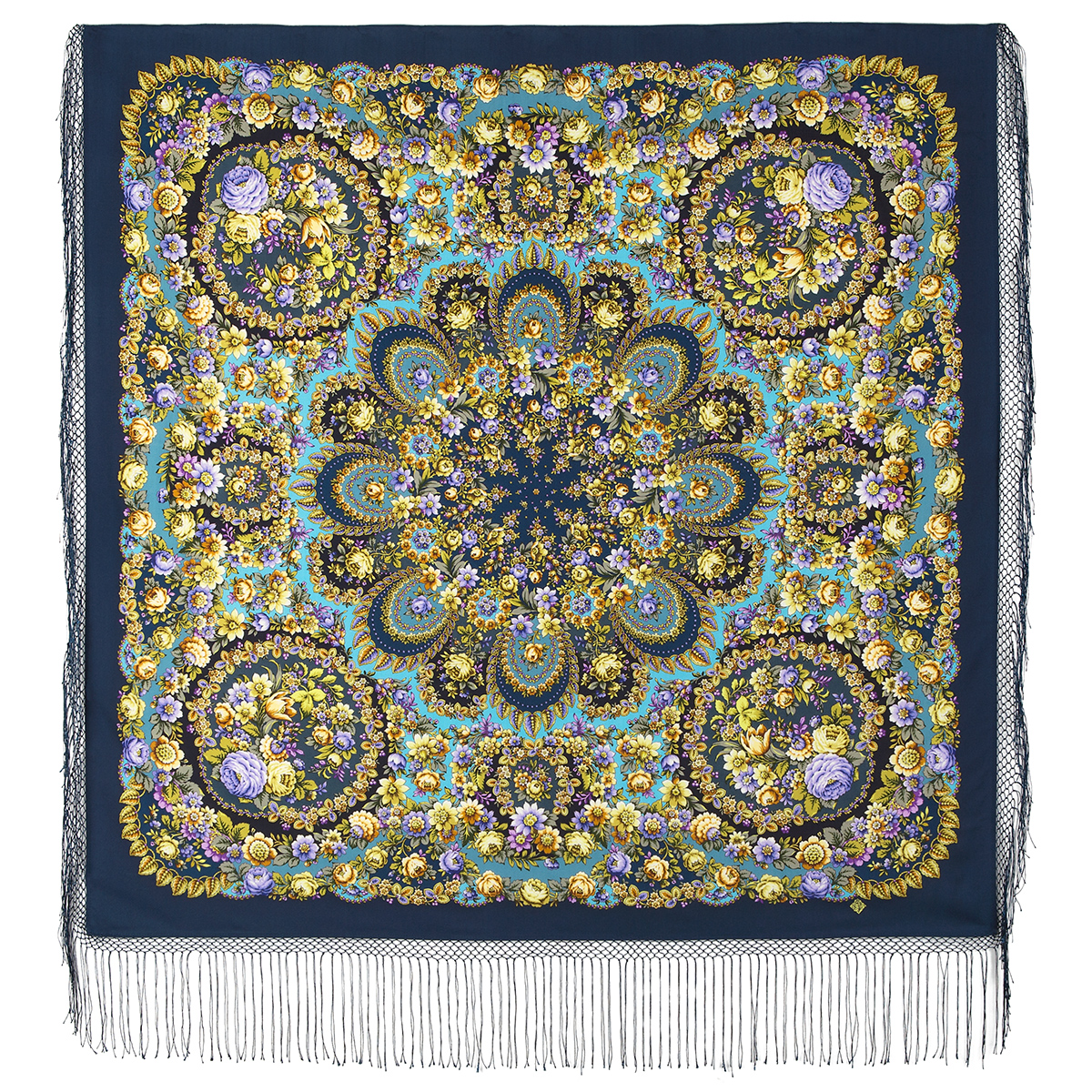 Многоцветная шаль из уплотненной шерстяной ткани с шелковой бахромой, 148х148см