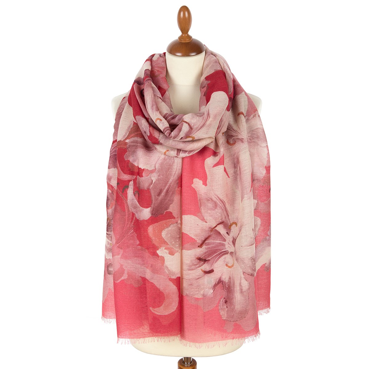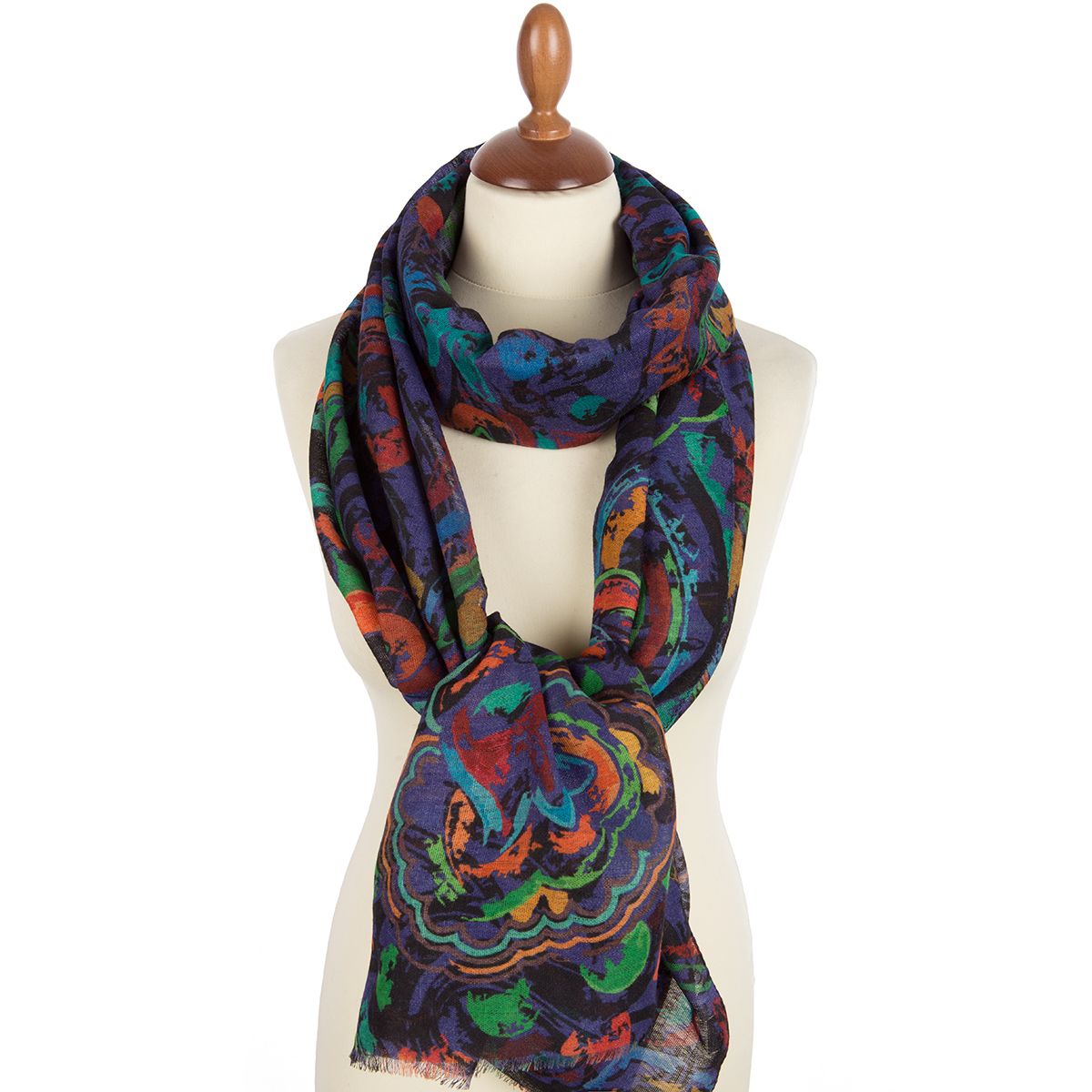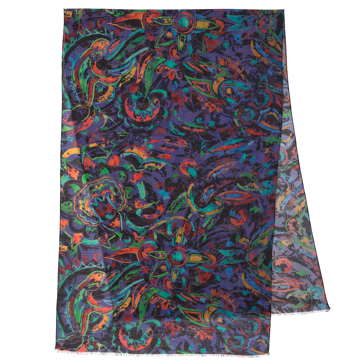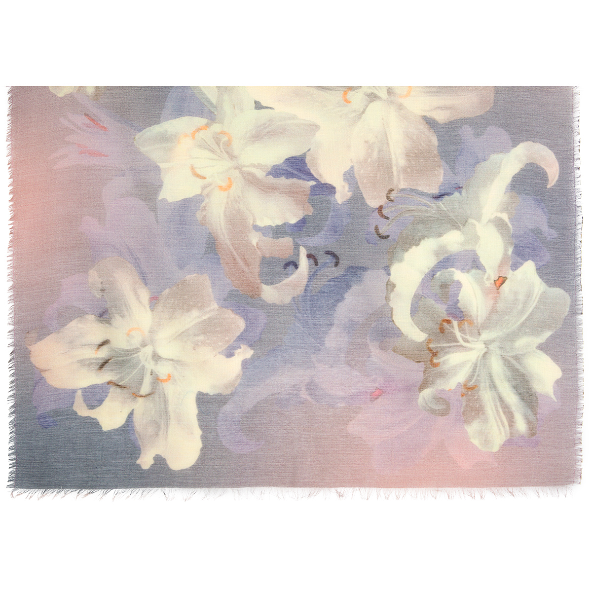 Палантин шерстяной набивной, 80х230 см. Палантины из легкой сильно разреженной ткани. По длинной стороне оформлены подрубкой со швом типа "зиг-заг" или осыпкой с перевивкой кромки, по короткой - осыпкой.