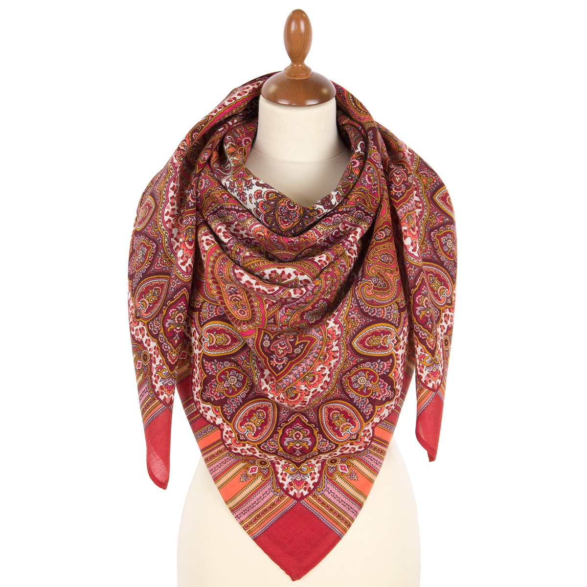Платок шерстяной с шелковой бахромой, 89x89 см