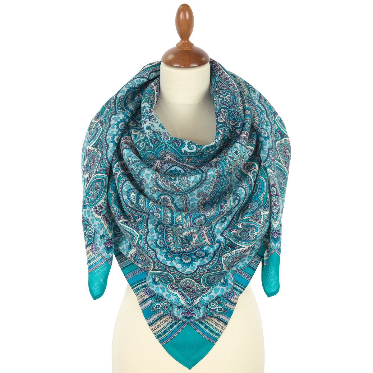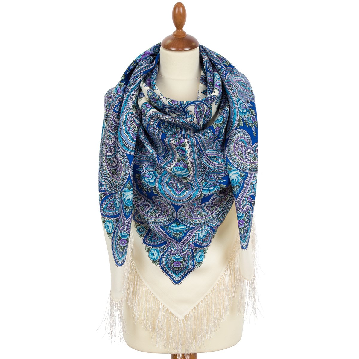Платок шерстяной с шелковой бахромой, 146x146 см