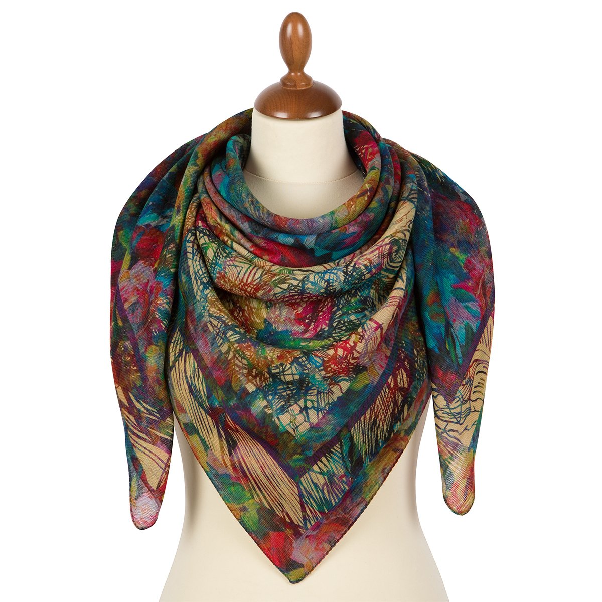 Платок из шерстяной разреженной ткани, с подрубкой , 115х115 см