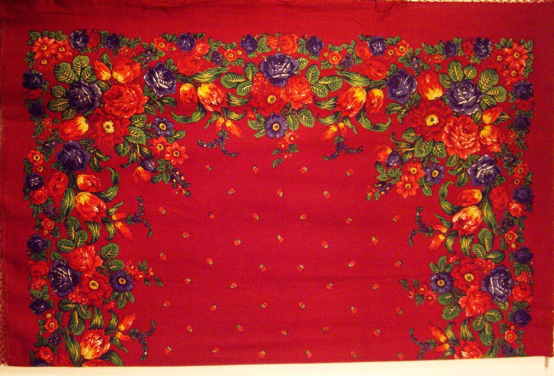 Шаль 155х155 хлопчатобумажная с цветочной каймой и радужными "спиральками". Ручная набойка. 1930 гг. Павловский Посад. Тема форума: ВЫСТАВКИ ПЛАТОЧНЫЕ
