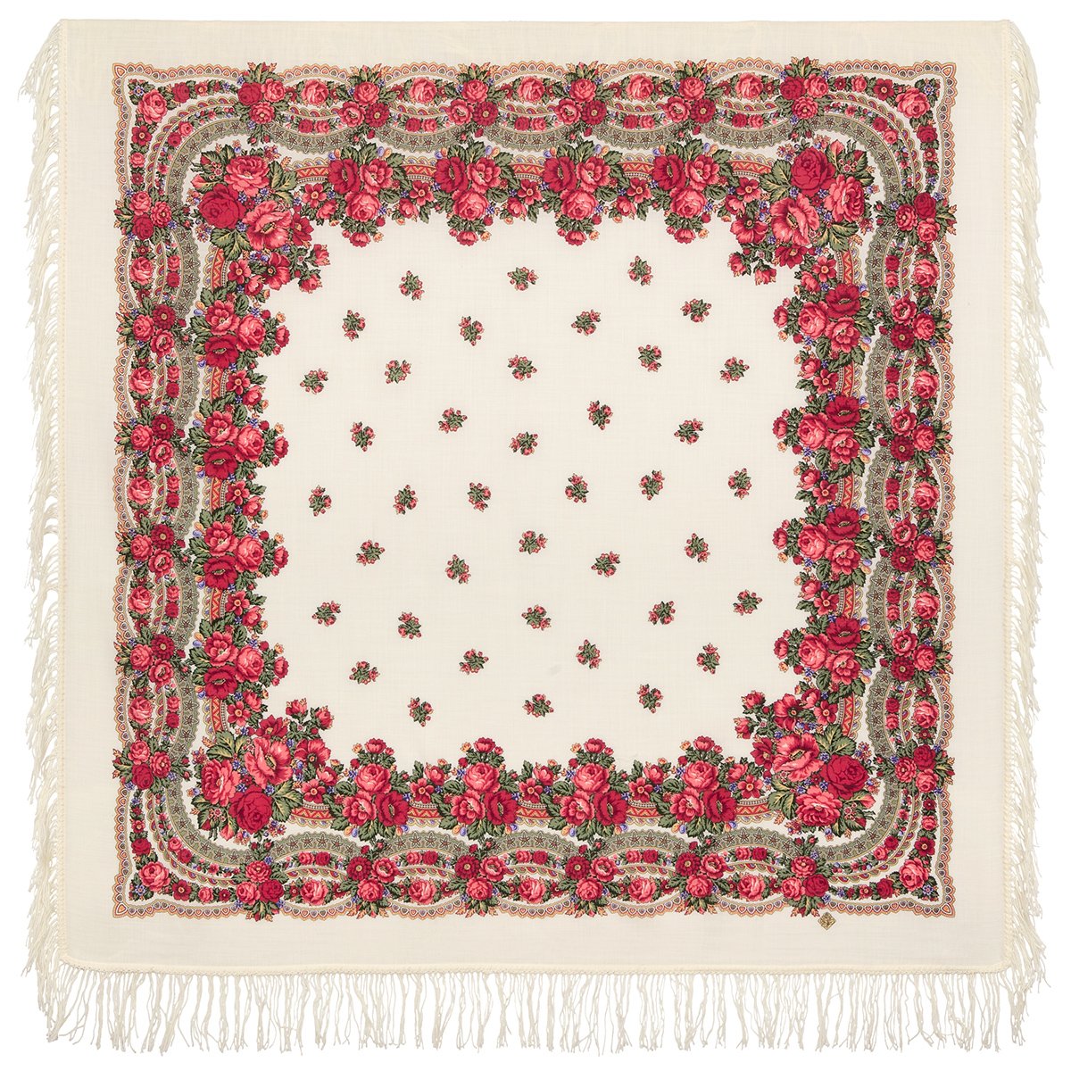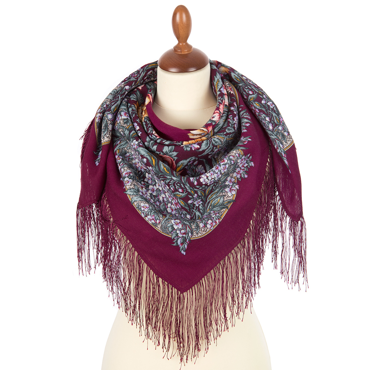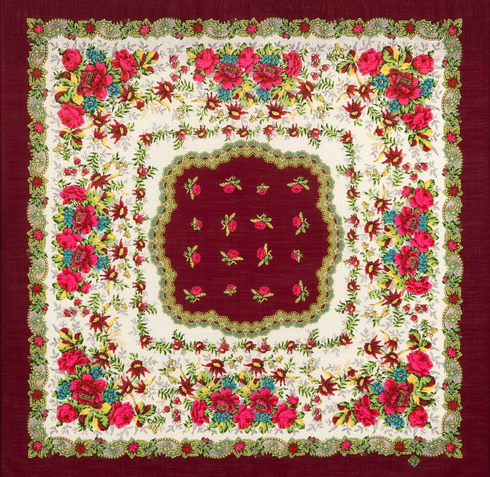 СОЛОВУШКА 1893. Платок шерстяной с шелковой бахромой, 89x89 см. Выпуск 2019 г.
