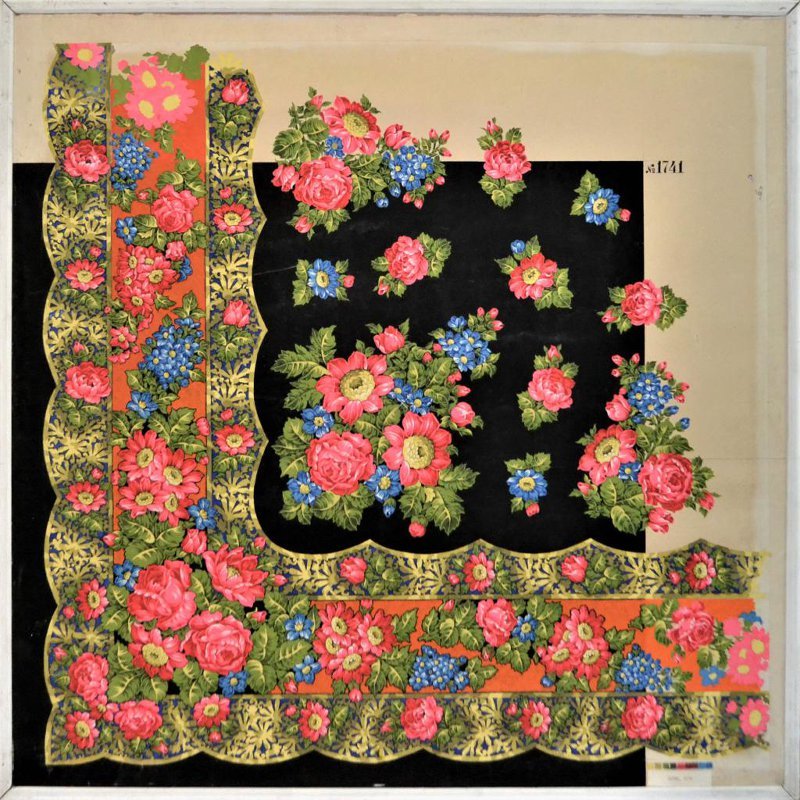 Эскиз платка "Кайма" (№ 1744) Период создания: