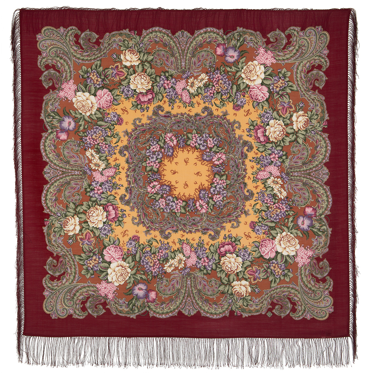 Шаль, напечатанная на уплотнённой шерстяной ткани, 148х148. Выпуск 2013г.