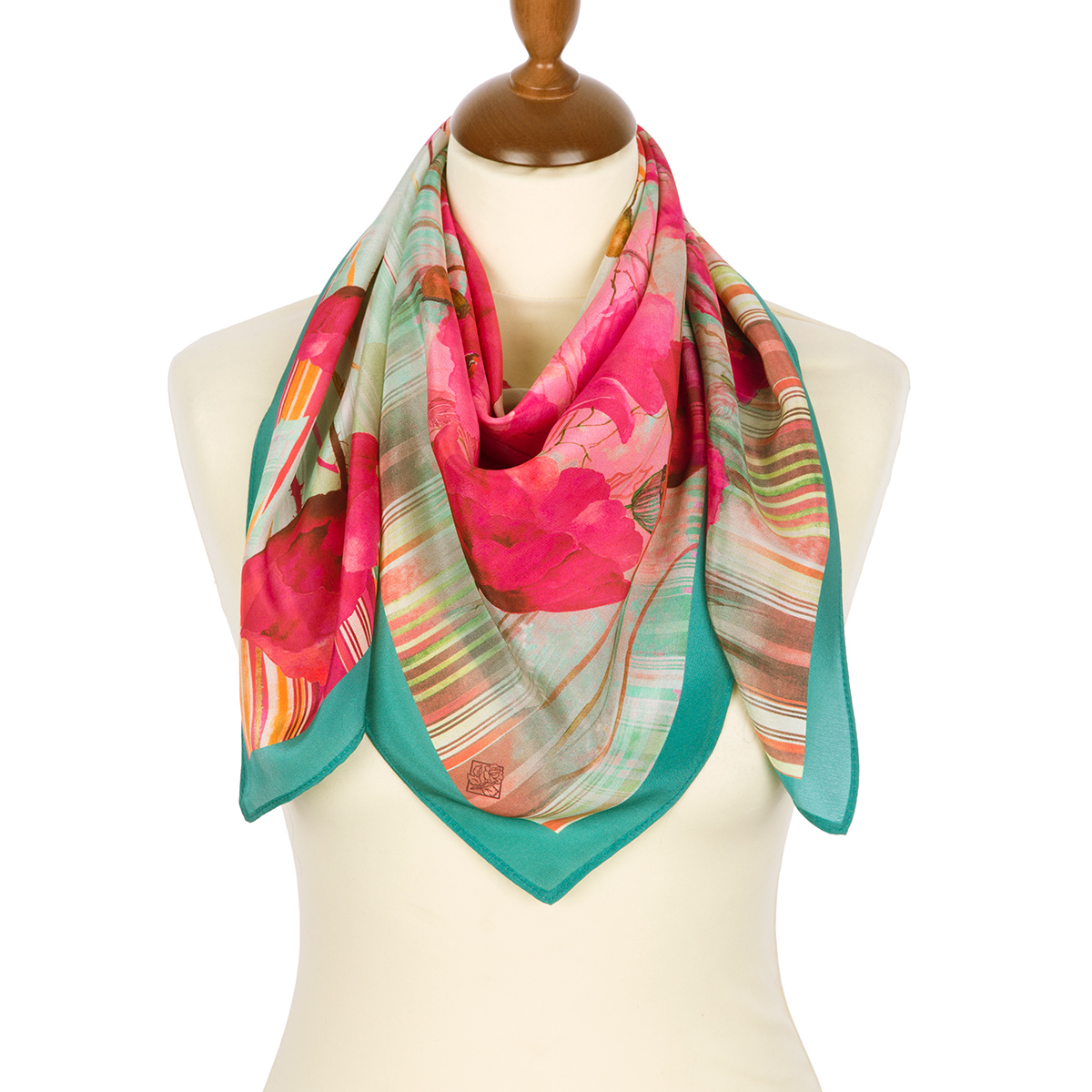 Платок шелковый (крепдешин) "10098", вид 10, 89х89 см