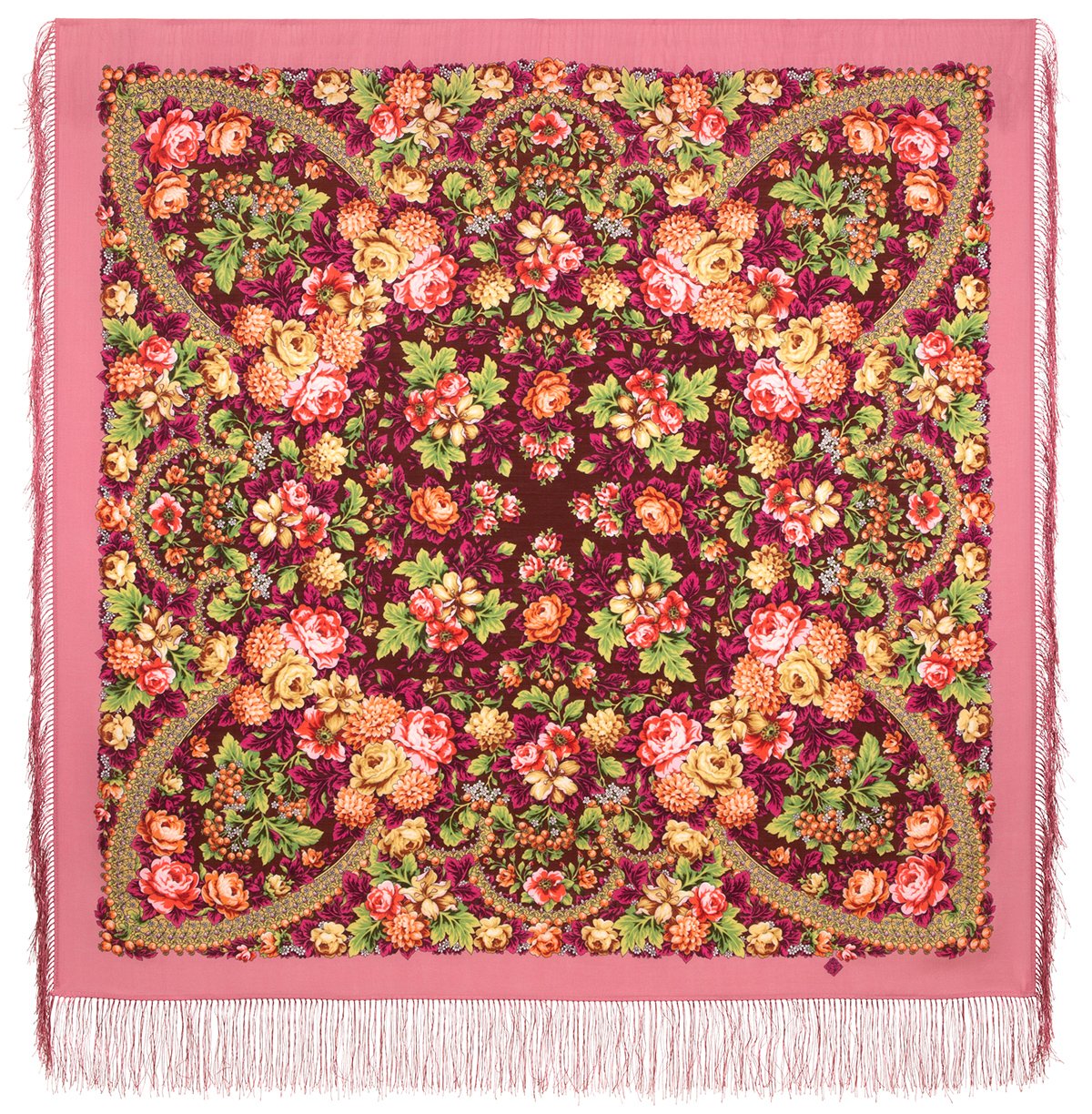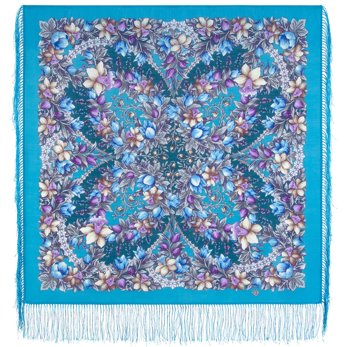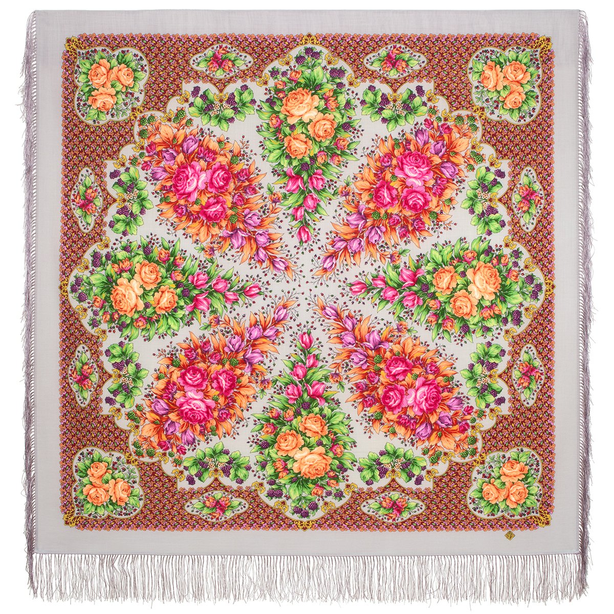 Платок шерстяной с шелковой бахромой, 125х125 см