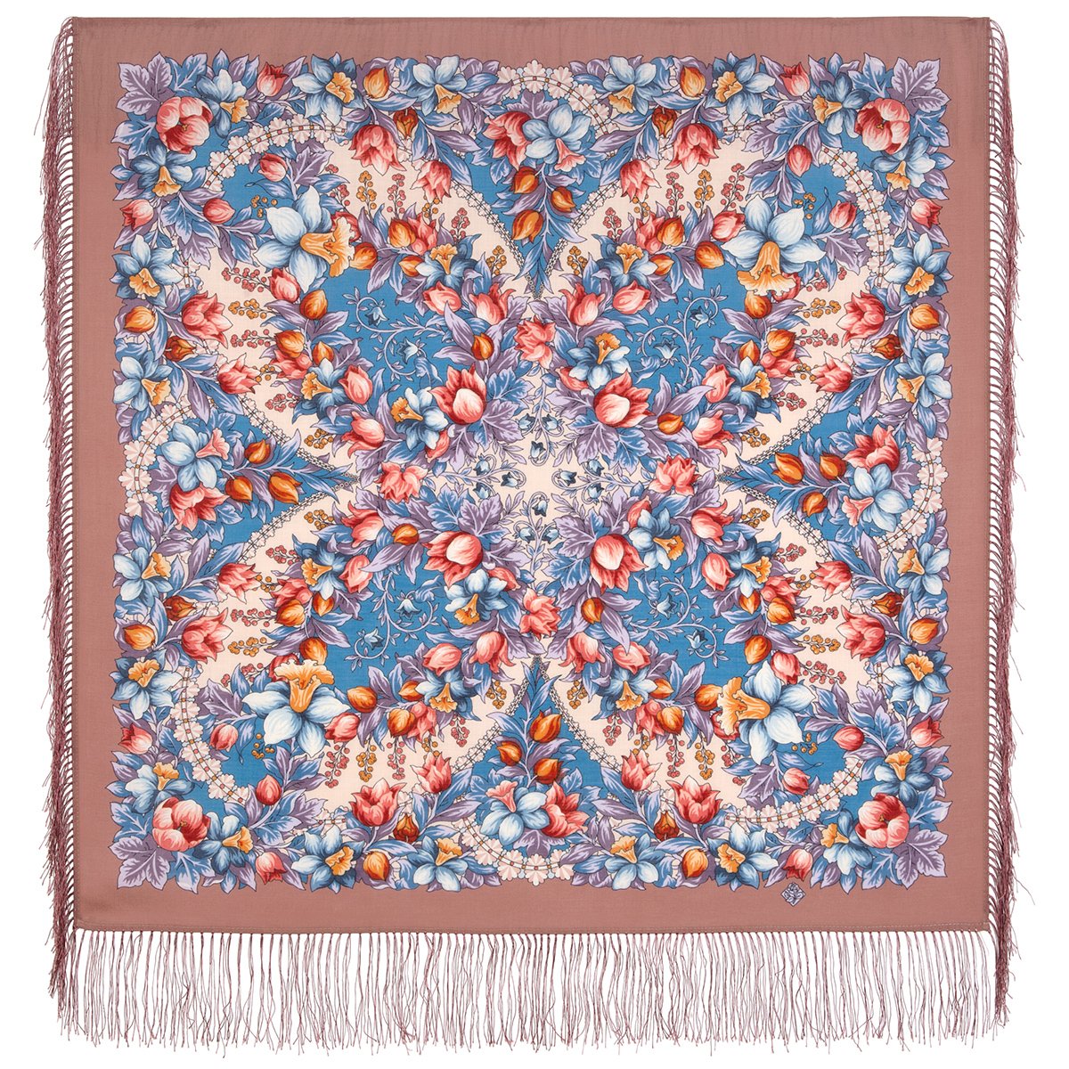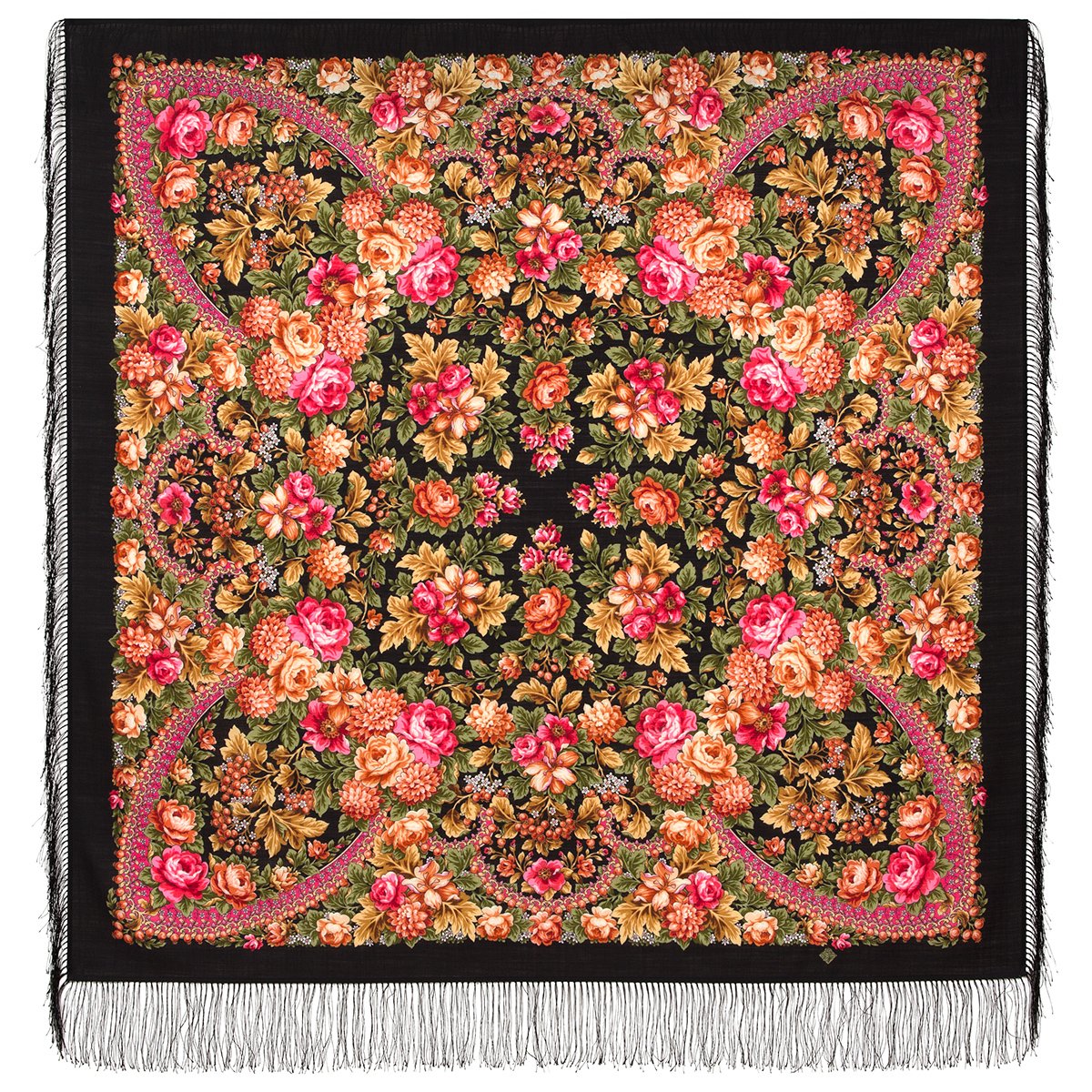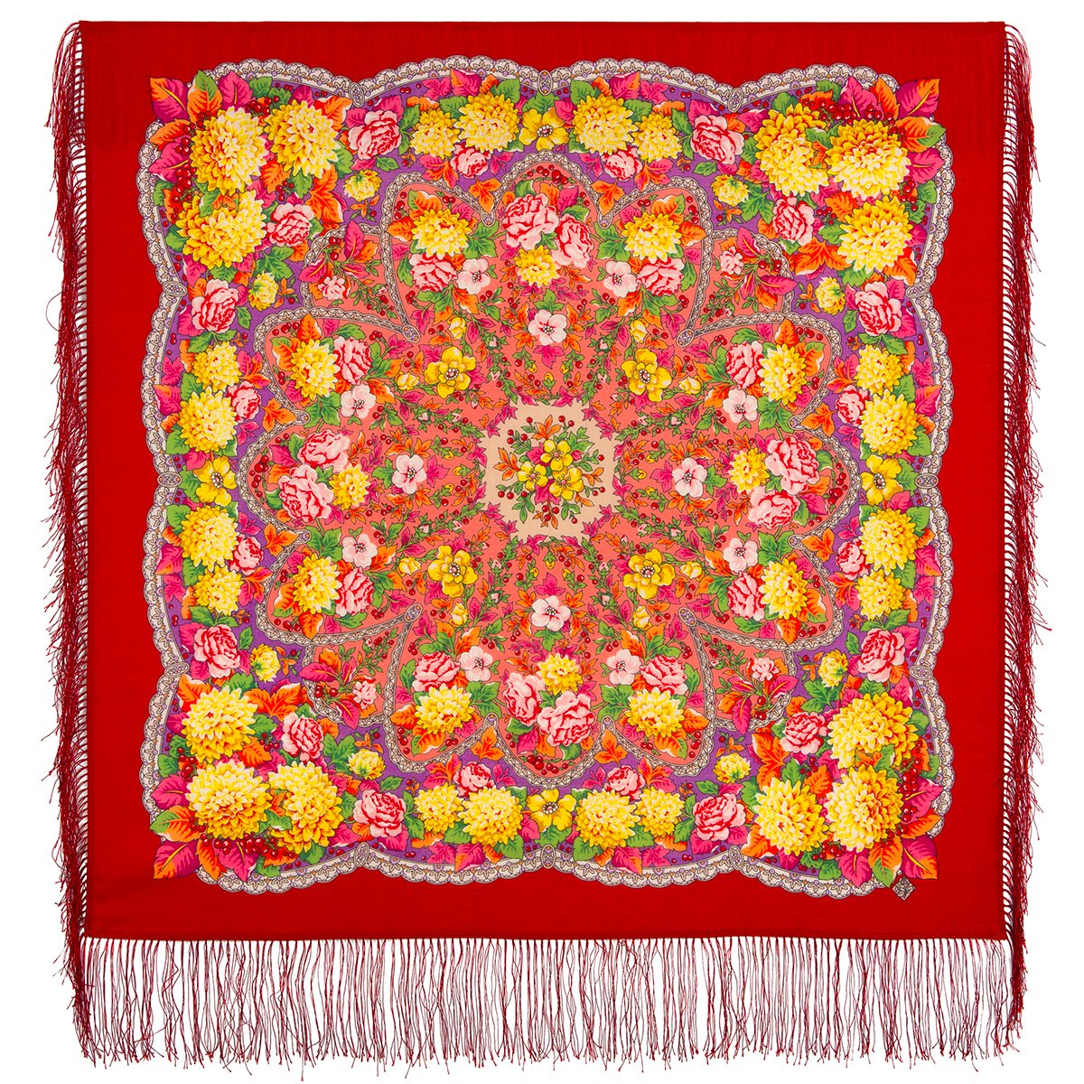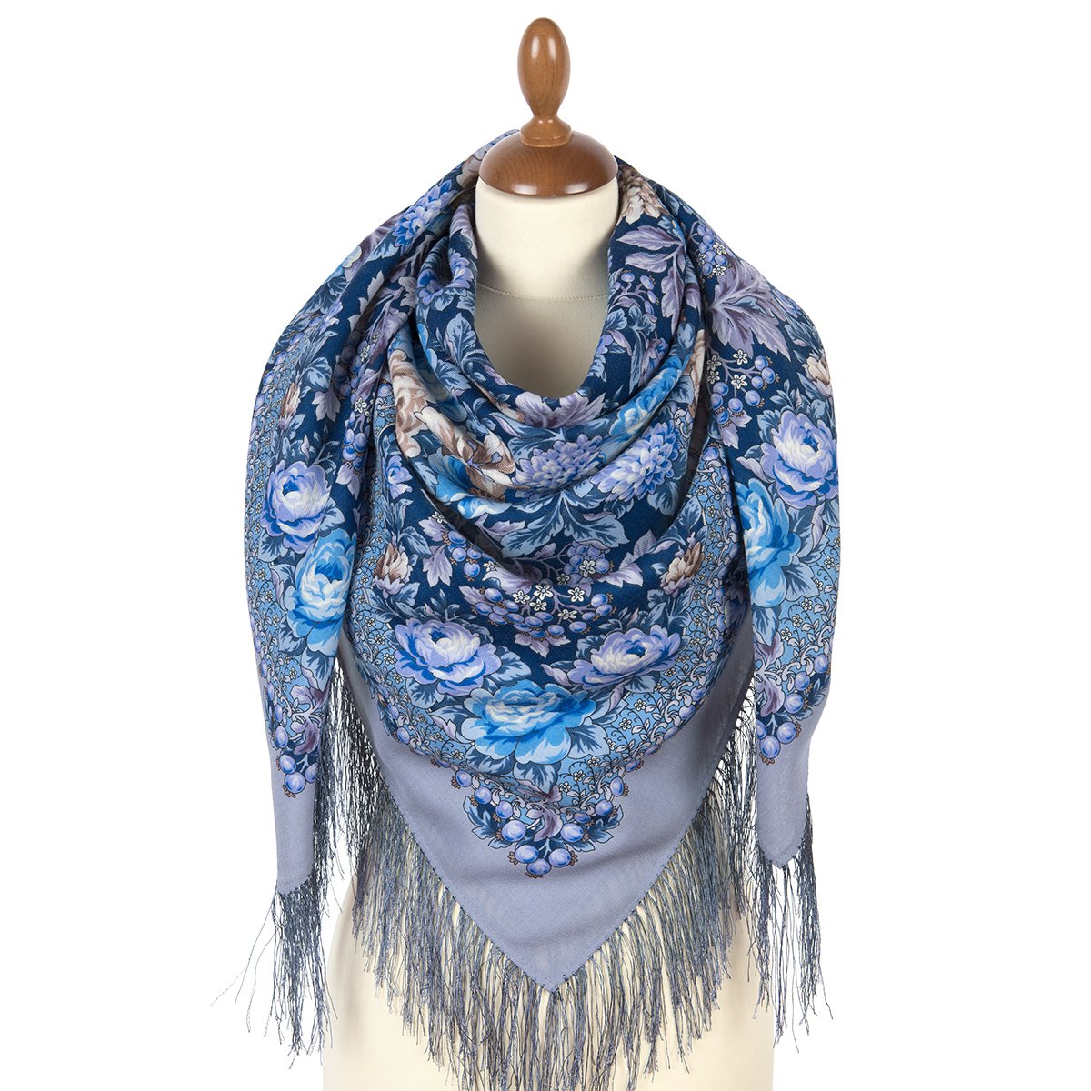 Платок шерстяной с шелковой бахромой, 125х125 см
