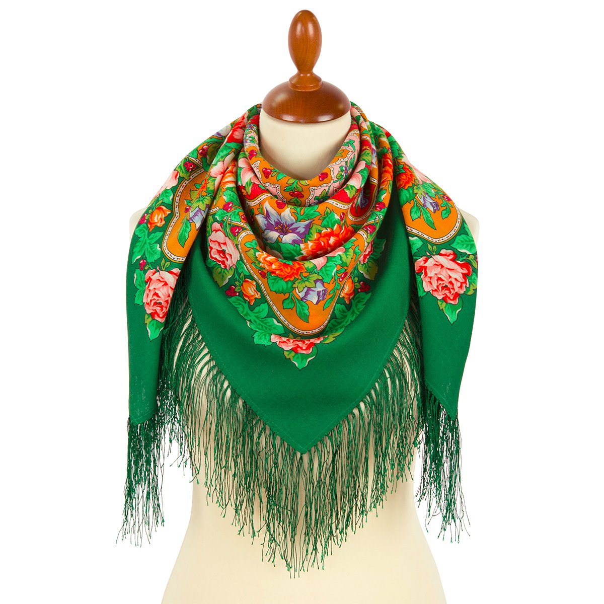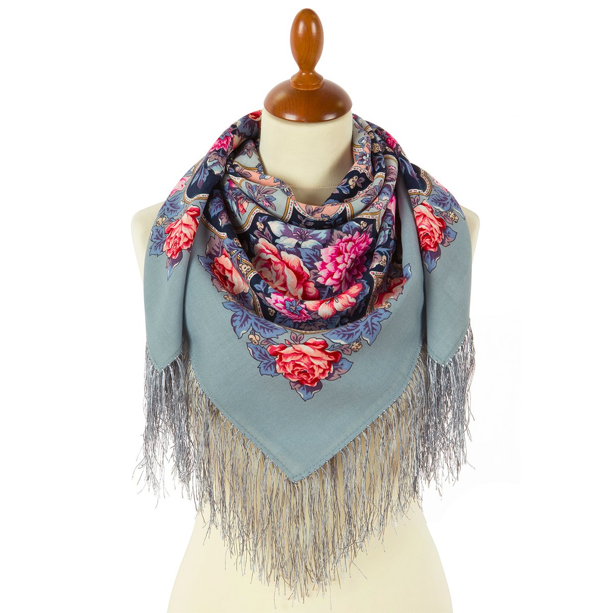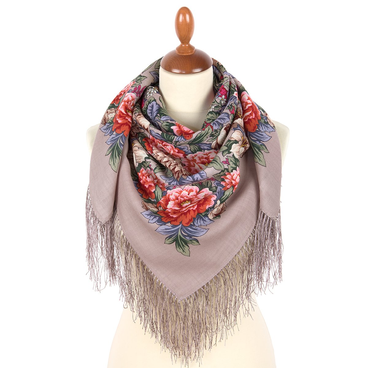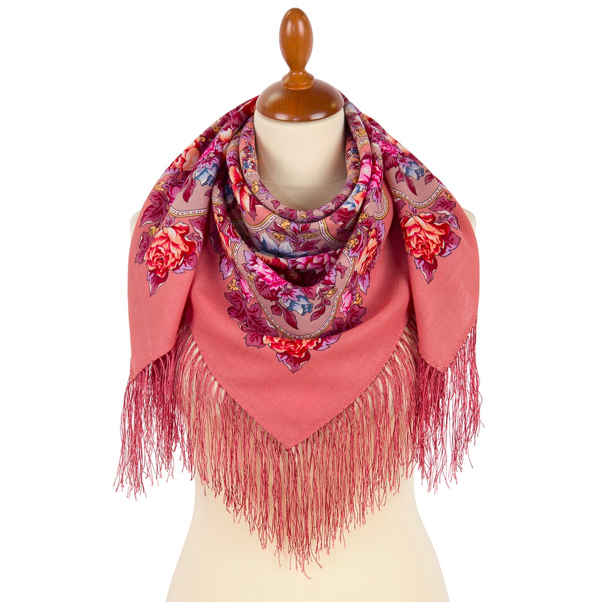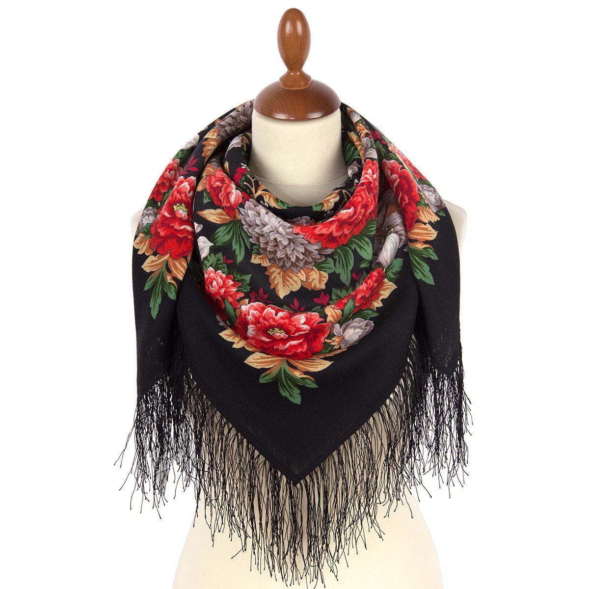 Платок шерстяной с шелковой бахромой, 89x89 см