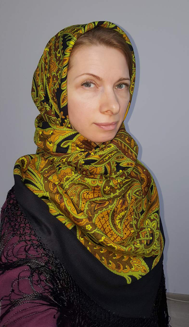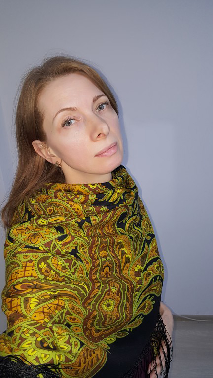 В общем-то, фото немного ... Еще один предмет восхищения платок "Песнь уходящего лета". Здесь на Оксане 10-й колорит