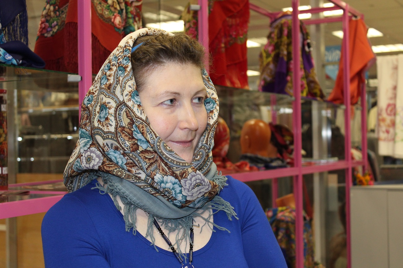 Еще заметила, что я хищно разглядываю платки у вас за спиной