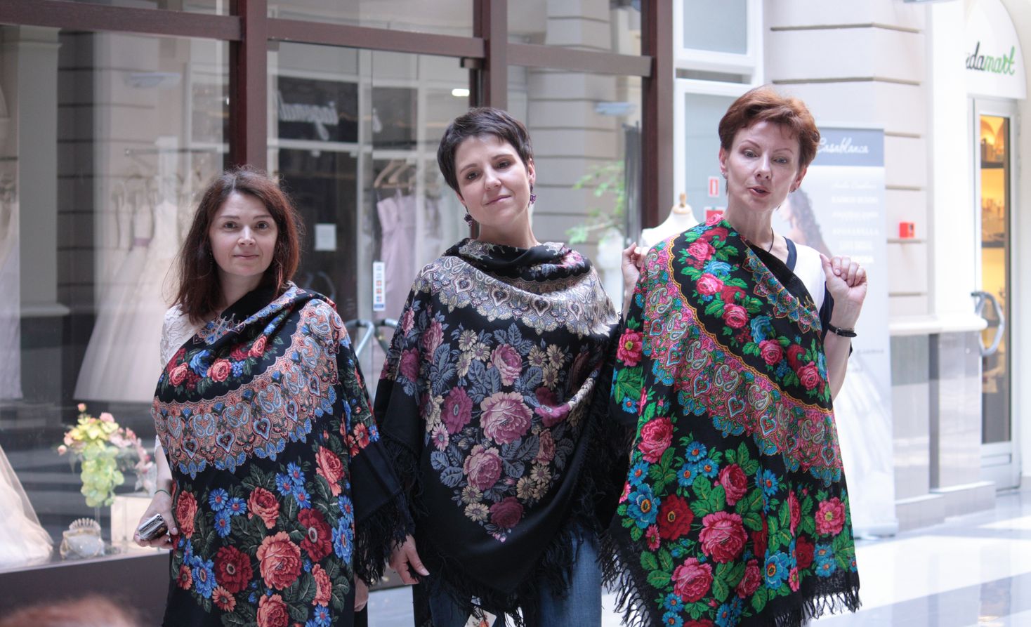 Ещё мы сравнили Осеннее танго и Филигрань. В процессе съемки, вдруг, странным образом, платок сам сполз с плеч манекена на бедра.