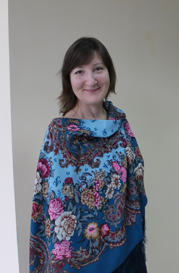 Оля в первый раз увидела Разводной бирюзовый и совершенно подпала под его чары. Платок, мне кажется, отвечает ей взаимностью.