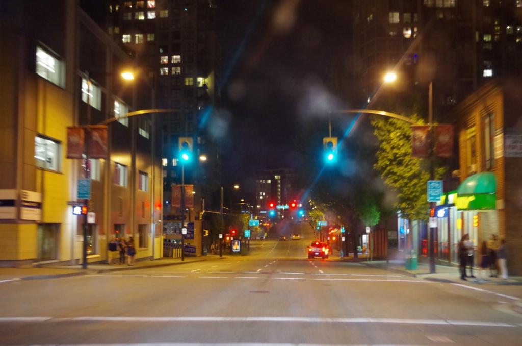 А потом дорога через ночной Ванкувер и дорога к порту.