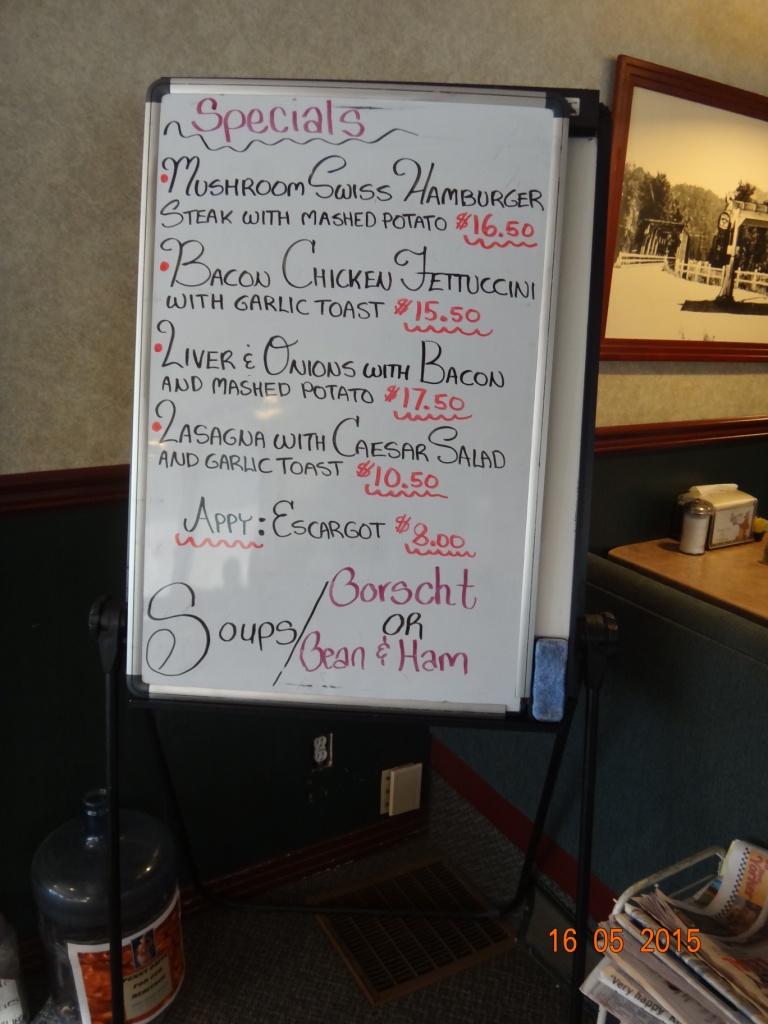 Пообедать остановились в придорожной таверне,служащей клубом немногочисленному местному фермерскому населению. Из чужаков были только мы.Первое,на что я обратила внимание - на доску при входе,на которой среди фирменных местных блюд числился БОРЩ