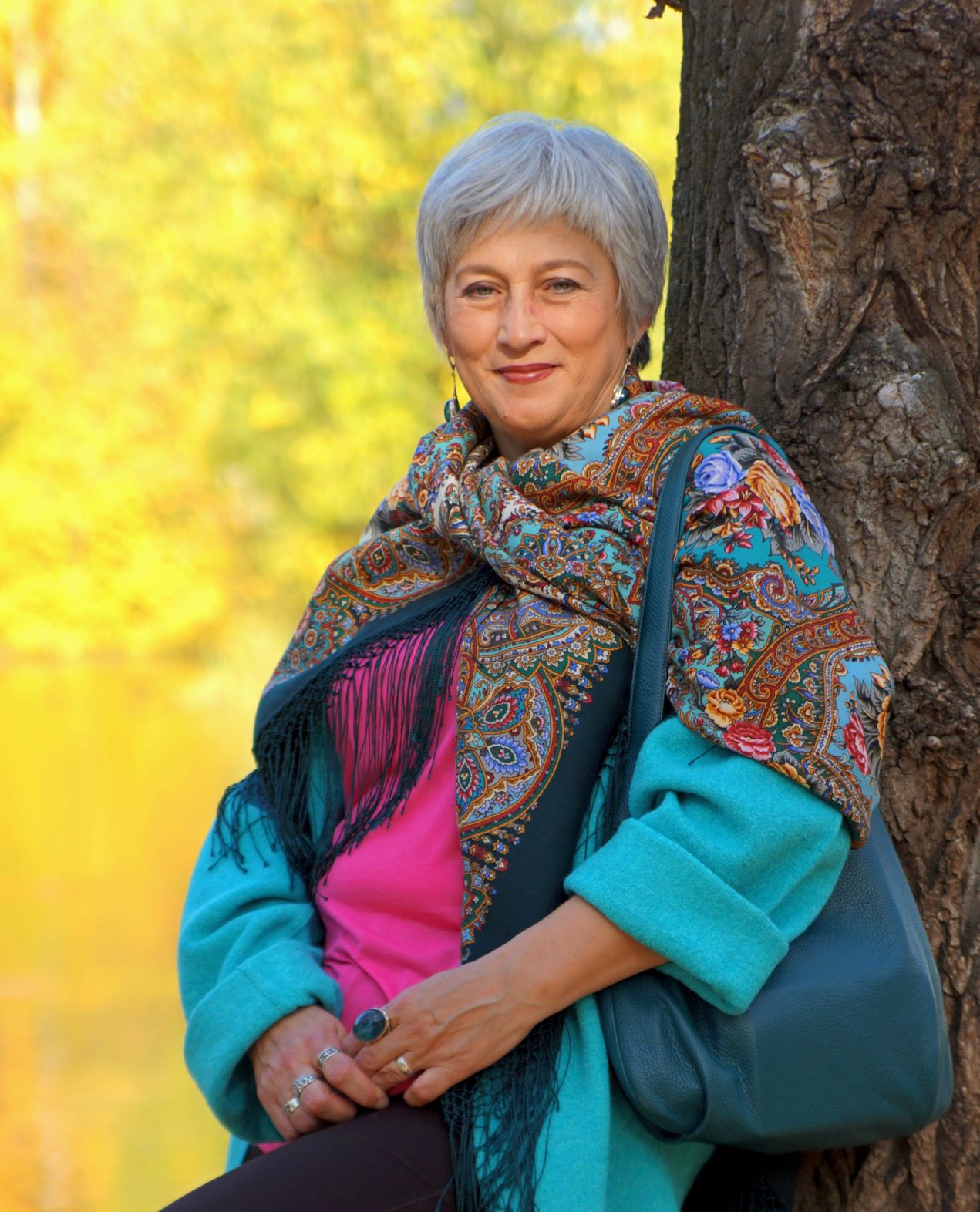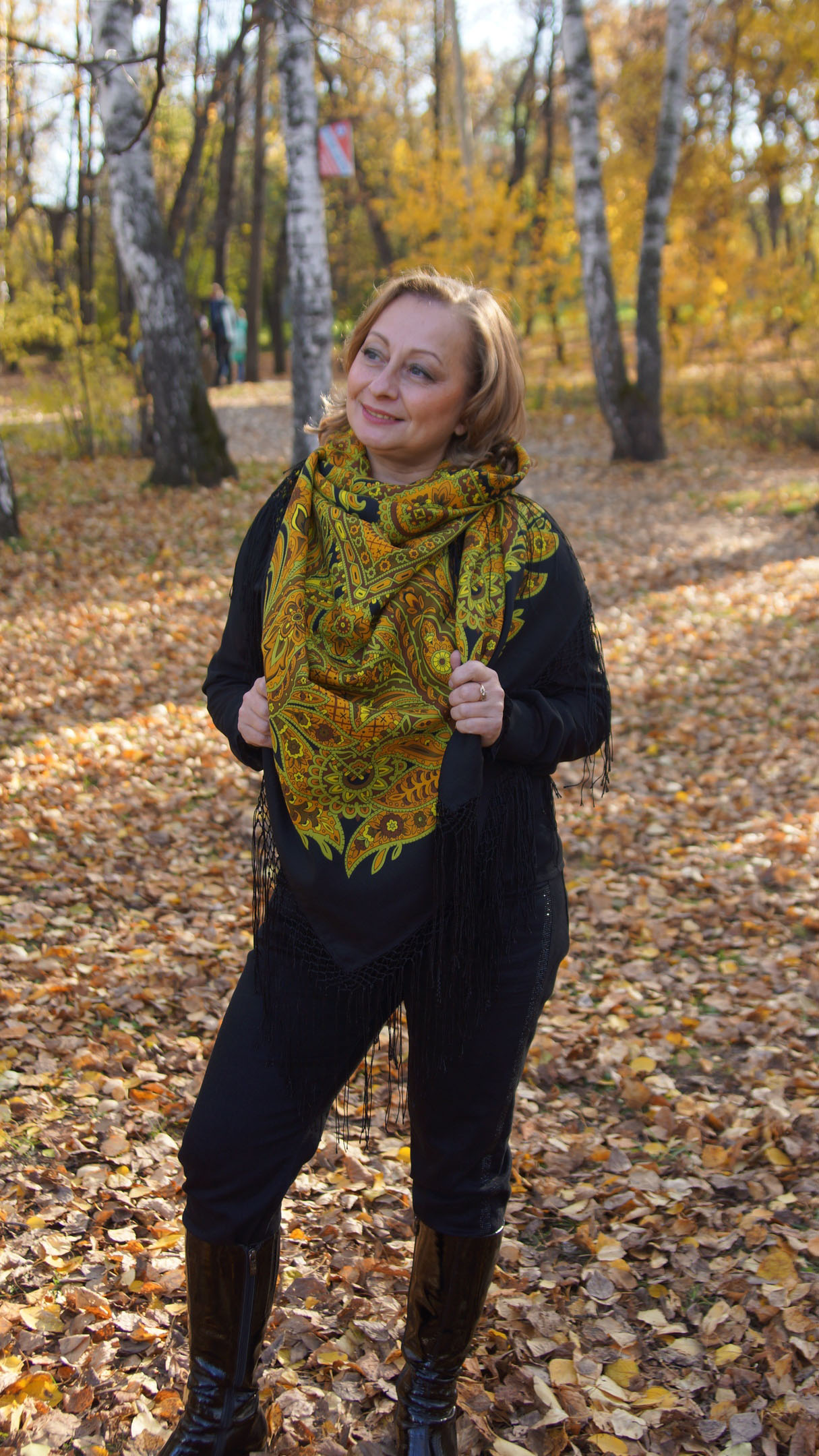На хозяйке шали Наталье можно рассмотреть поподробнее.