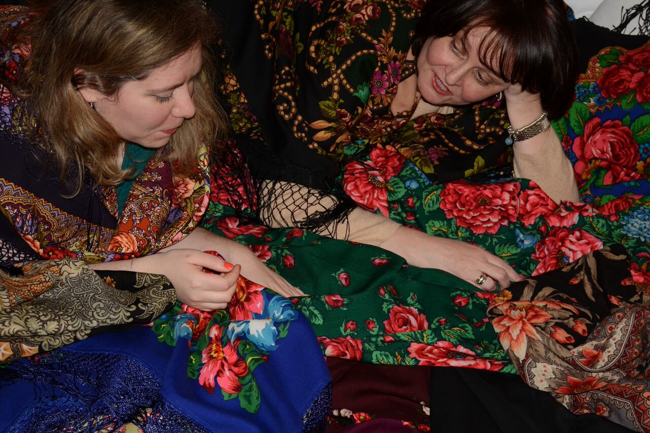 Хорошо что после неугомонного веселья мы опомнились и успели по-фотографировать платки, потому что иначе я бы так и не отразила такое количество шедевров. Мозг не успевал обрабатывать такие объемы редкой красоты