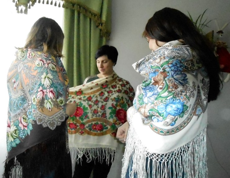 За три часа перемерили кучу шалей и платков, наговорились, насмеялись.
