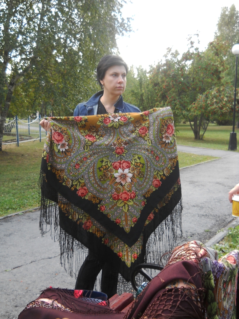 А эта бабулька, прибежала ( в буквальном смысле) , потрогала шаль и выдала : " А что это за ткань?... Шерсть? Да какая же это шерсть, неет, это не шерсть" И как мы её не убеждали, она нам не поверила.
