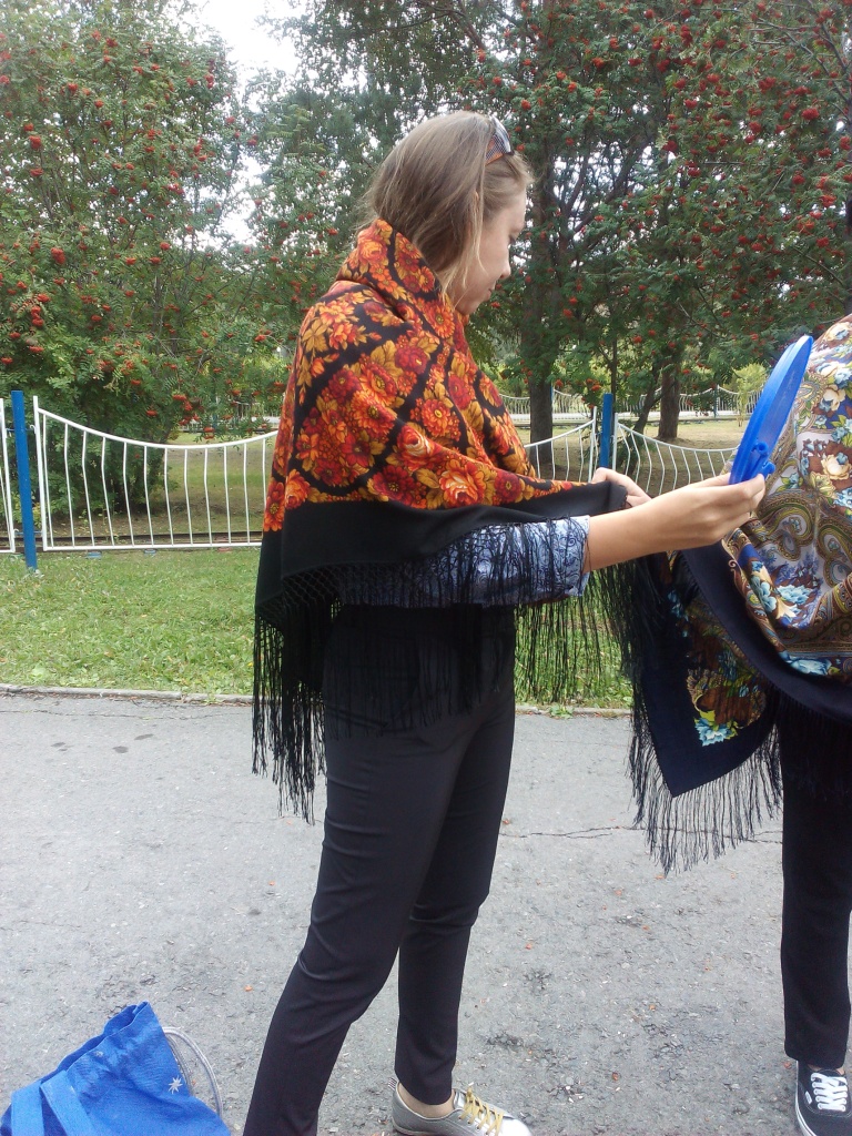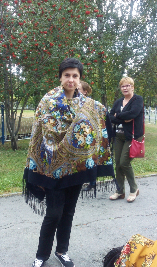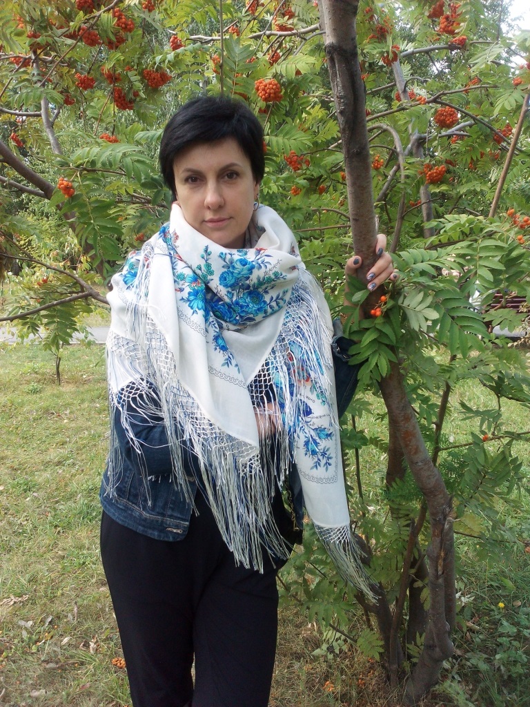 Гжель 3 на Оксане, ну а 7-й на своей хозяйке Маша и Гжель 3 И новый платочек Оксаны "Именинница" 1