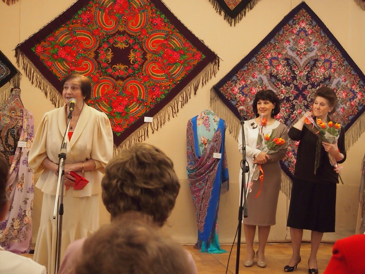 Наташа сфотографировала Карманову Зою Сергеевну - бывшего главного инженера ППМ. Как мы поняли, это легендарная женщина в Павловском Посаде. Еще до того, как мы ее увидели на выставке, мы о ней услышали в музее русской шали. Ирина Викторовна, хранитель музея, нам рассказала, что и И.П. Дадонова и З.С. Карманова очень контактные, доброжелательные люди. Охотно делятся своими воспоминаниями о работе в прежние годы, консультируют. Ирина Петровна подарила музею некоторые вещи. Но, не помню, уже где, мы услышали, что "З.С. Карманова - это местная "Фурцева". Вот такую характеристику дамы, ни больше, ни меньше.