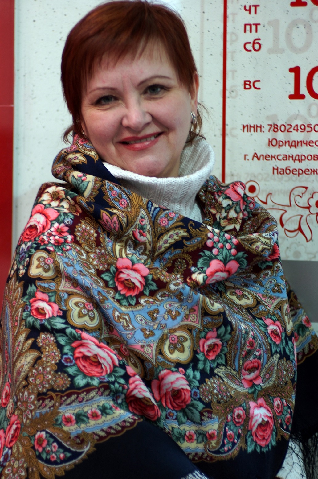 Так вот Купчиха 1572-12, у платка такой приятный цвет корицы и розы очень красивые и рисунок не навязчивый. очень нежный демократичный платок, коме того он оч. хорошо смотрится на голове.