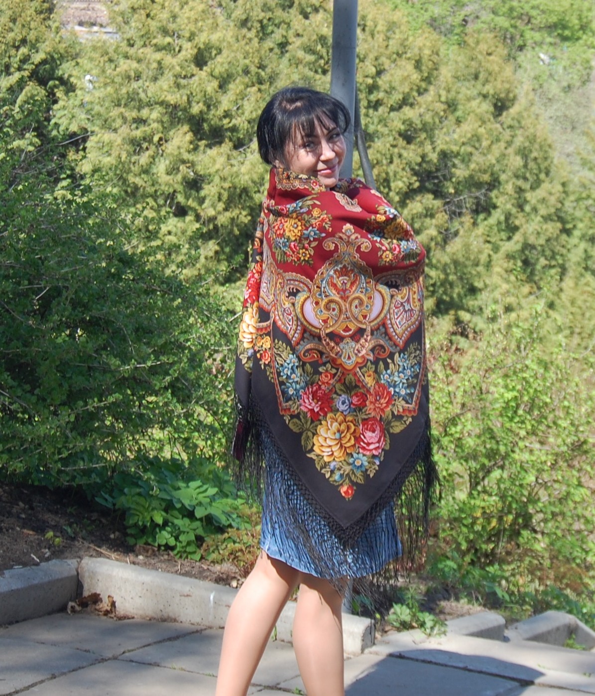 Когда смотрю на красную "Молитву" - вижу огонь, и каждый раз представляется по новому - большой камин и в нем огонь, большой костер у берега реки и его огонь, отражающийся в воде по кругу. Становится тепло уже от того, что смотришь на шаль, а чернопольная "Молитва" - строгая, но очень красивая (Кликните, чтобы почитать, что спрятано под катом)...