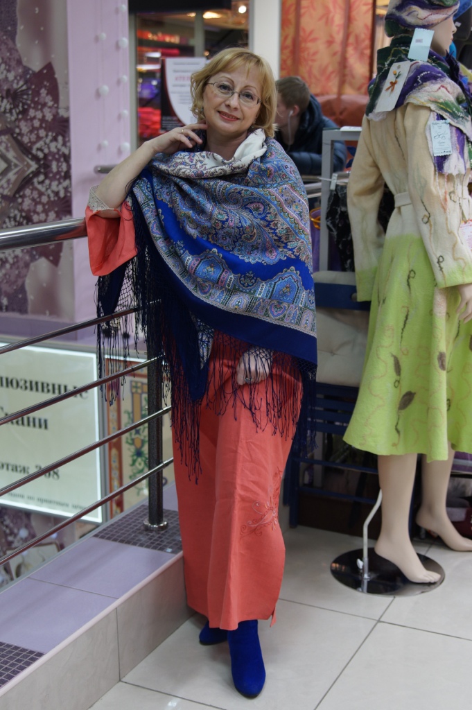 Встретились сегодня в магазине "Русские платки" в БУМе, скоро в этом магазине будет больше платьев, юбок и льняных платьев, чем платков.прибежали напримерялись вдоволь.