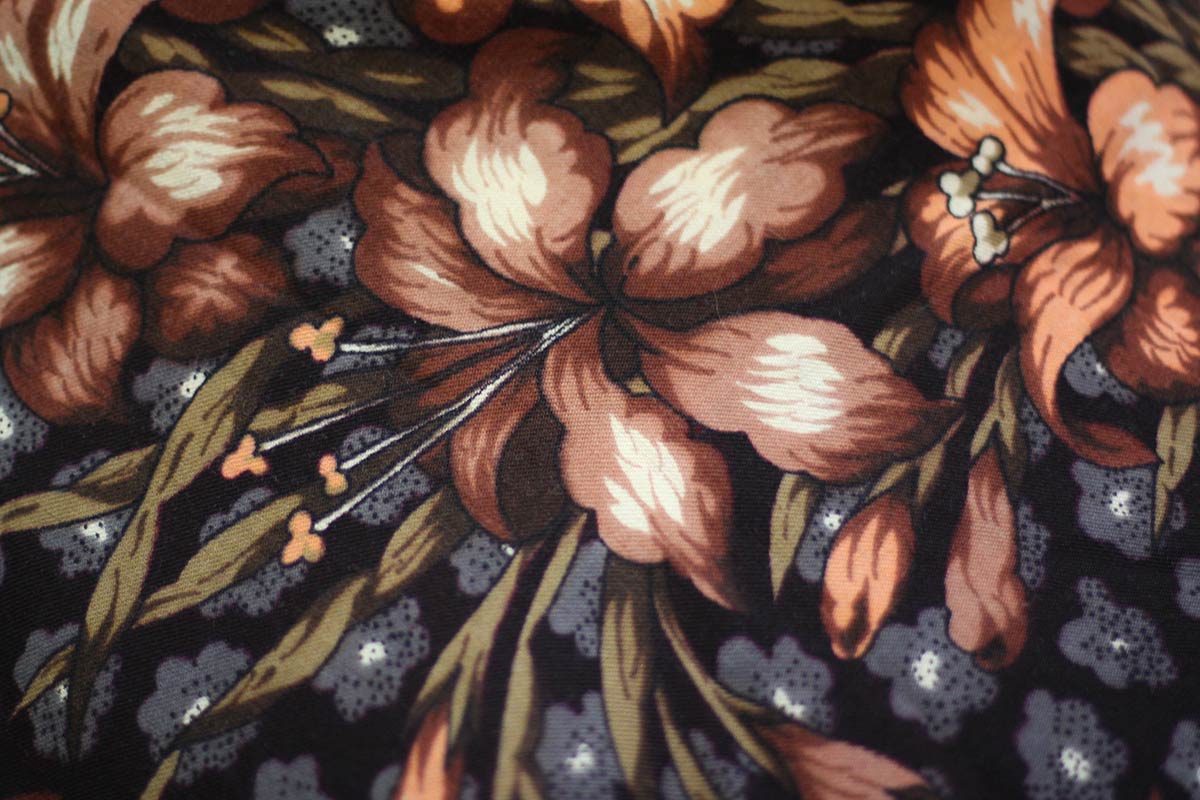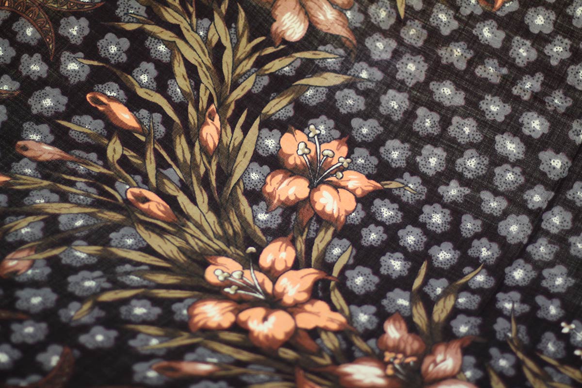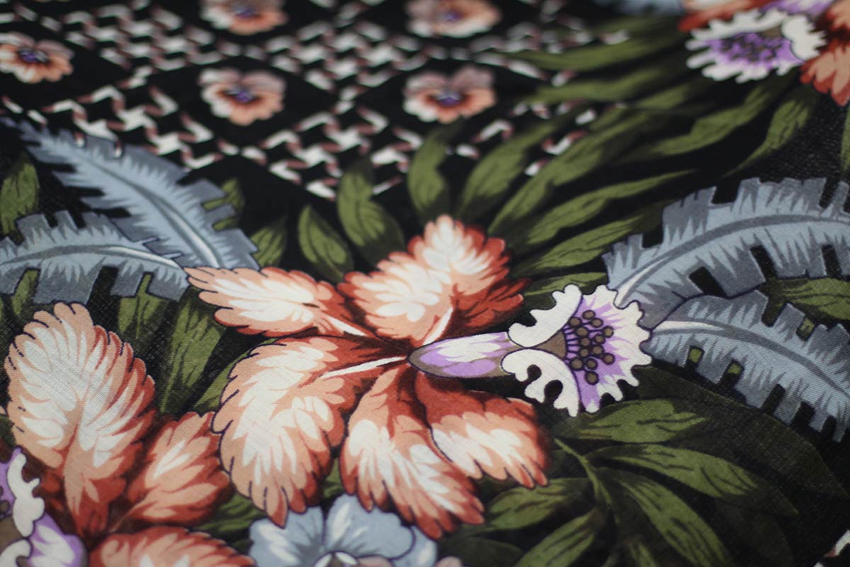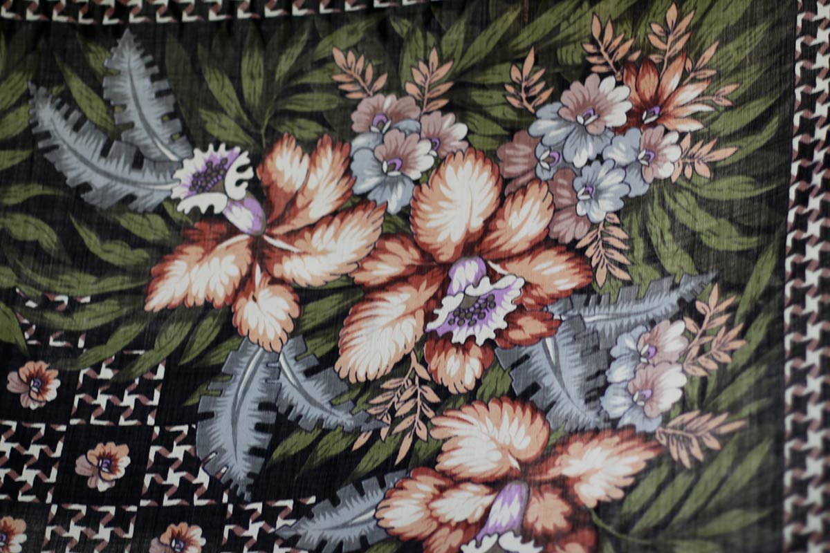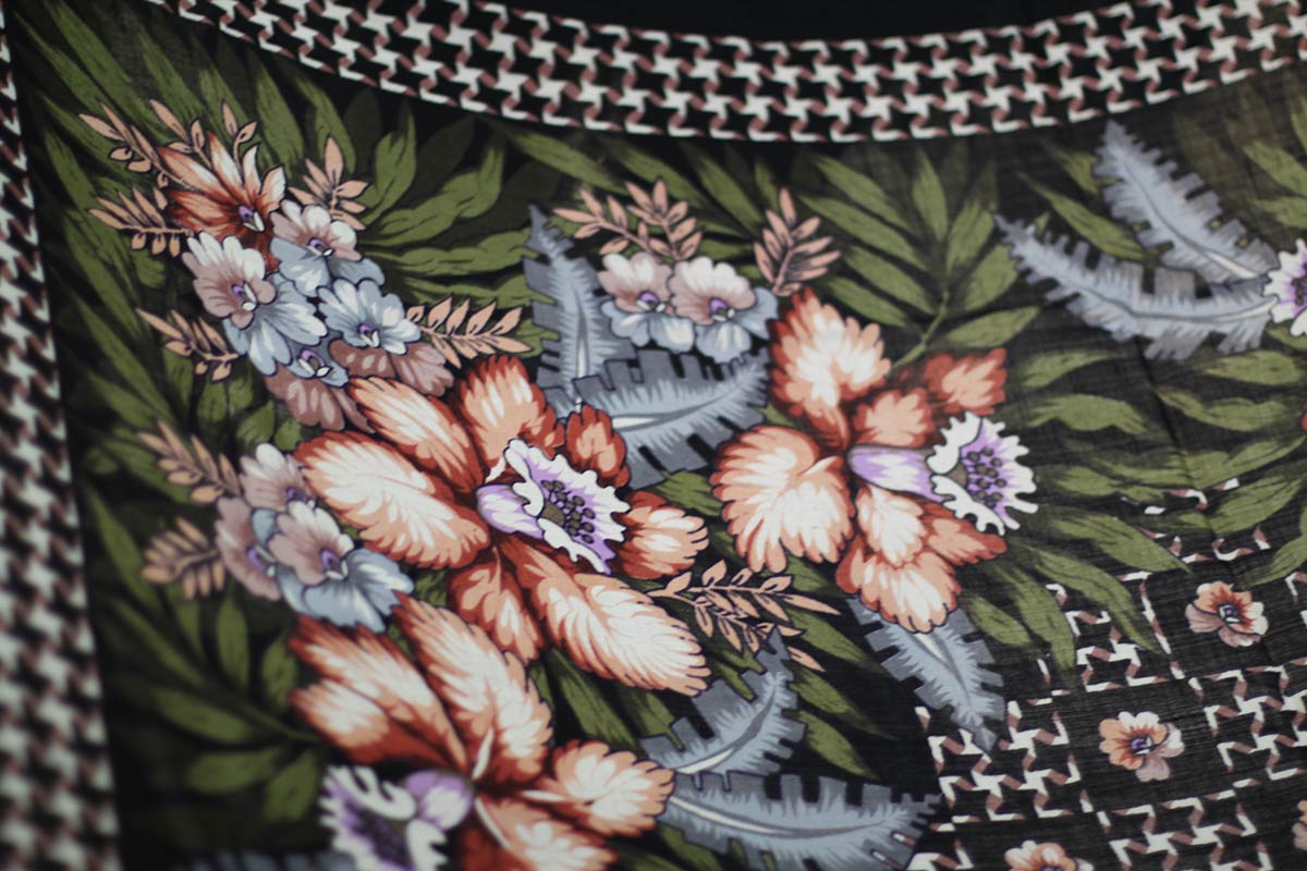 Платок очень интересный, его бы сейчас выпустить, очень современно смотрелся бы, только на размере 146. Такие цветы хищные, просто Ух. Мне он напомнил своими цветами Кащеево царство Ольшевской