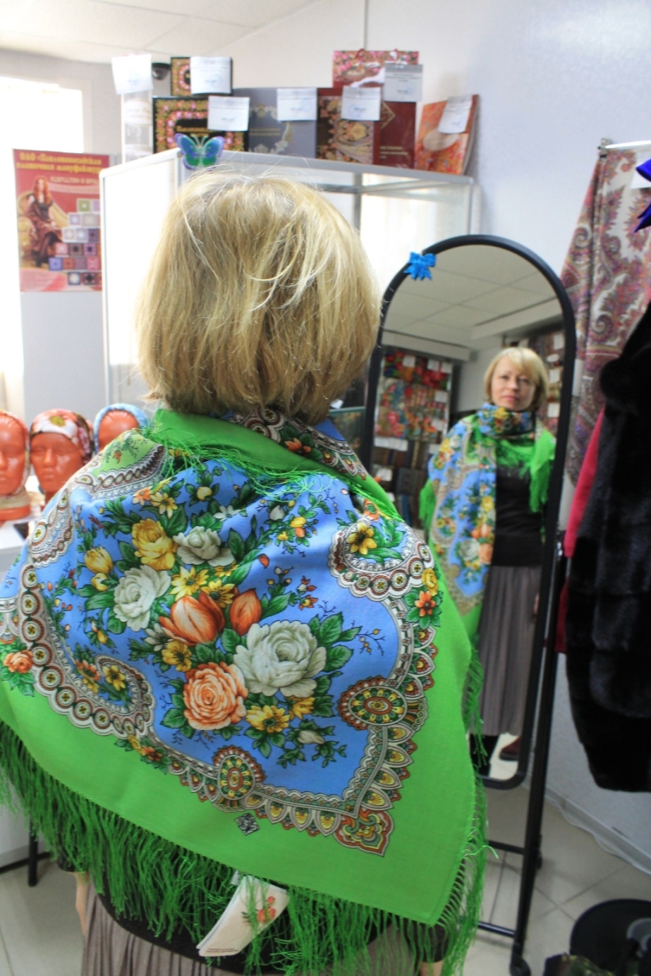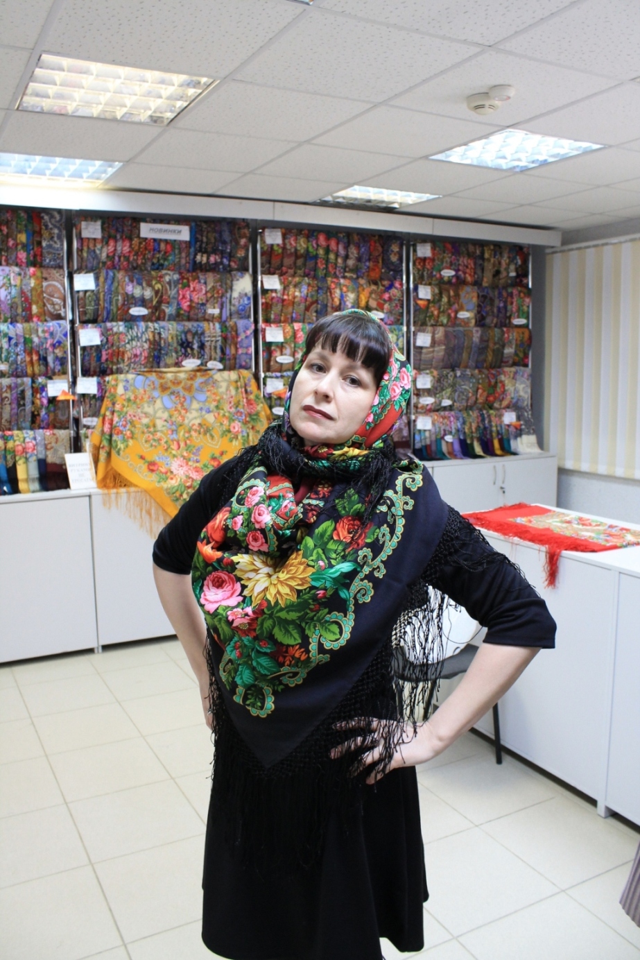 Оксана, наш продавец, успевала везде. Оксана, искренняя Вам благодарность за терпение, профессионализм, радушие и внимание! У Вас приятно покупать. Ни словом, ни мимикой, ни жестом не выказала усталости, скуки или недовольства нашими примерками. Мы , конечно, сознаем свой недуг и стараемся доставлять как можно меньше неудобств продавцам инормальным людям покупателям. Так что пока мы крутились перед зеркалом, довольно много покупателей ушло с новыми платками .