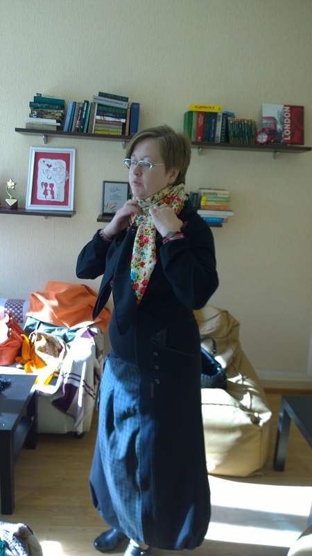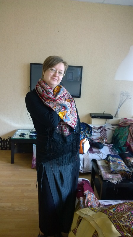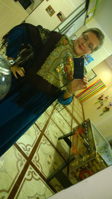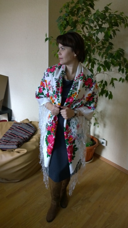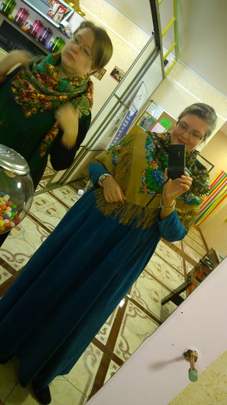 А еще мы со Светой примерили Волшебницу-0 на итальянской ткани. я всегда думала, что эта шаль не для светловолосых дам, но...мне кажется, очень даже неплохо!