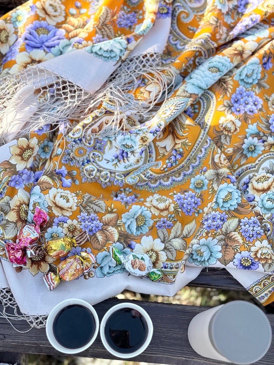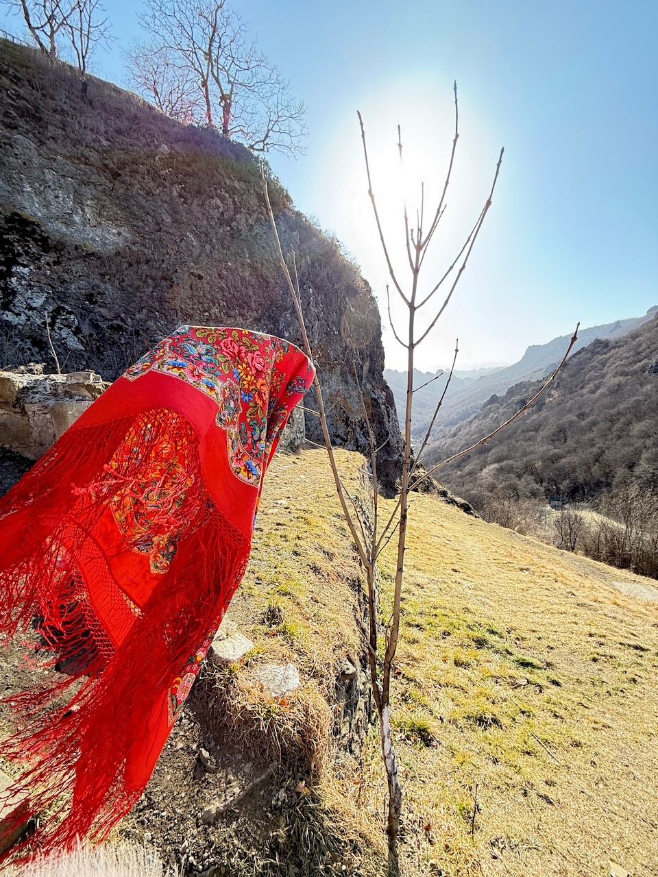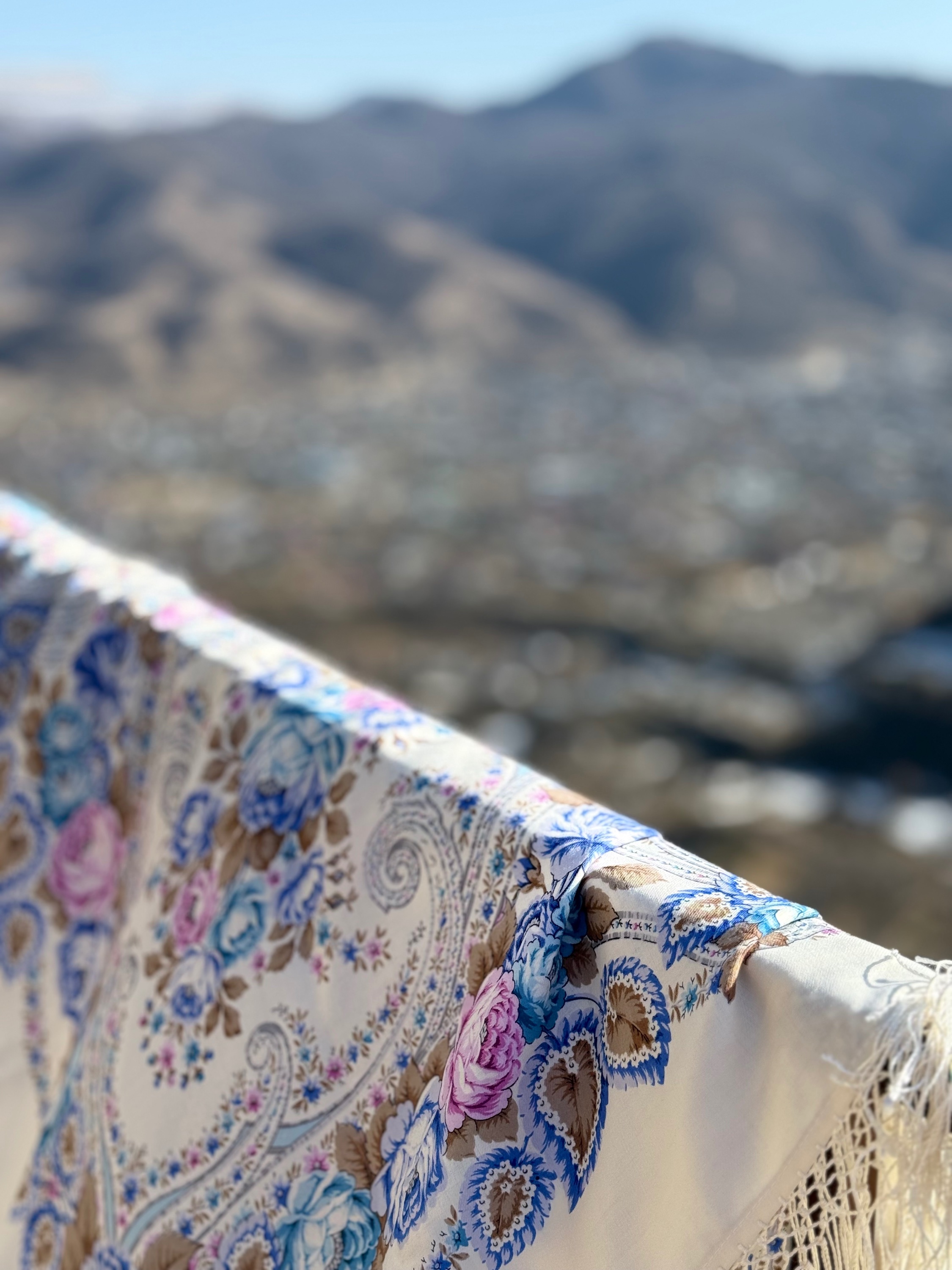 В этом году я довольна своим выбором шалей. В прошлом году взяла с собой Княжеский-17 и так он уныло выглядел на вершине.