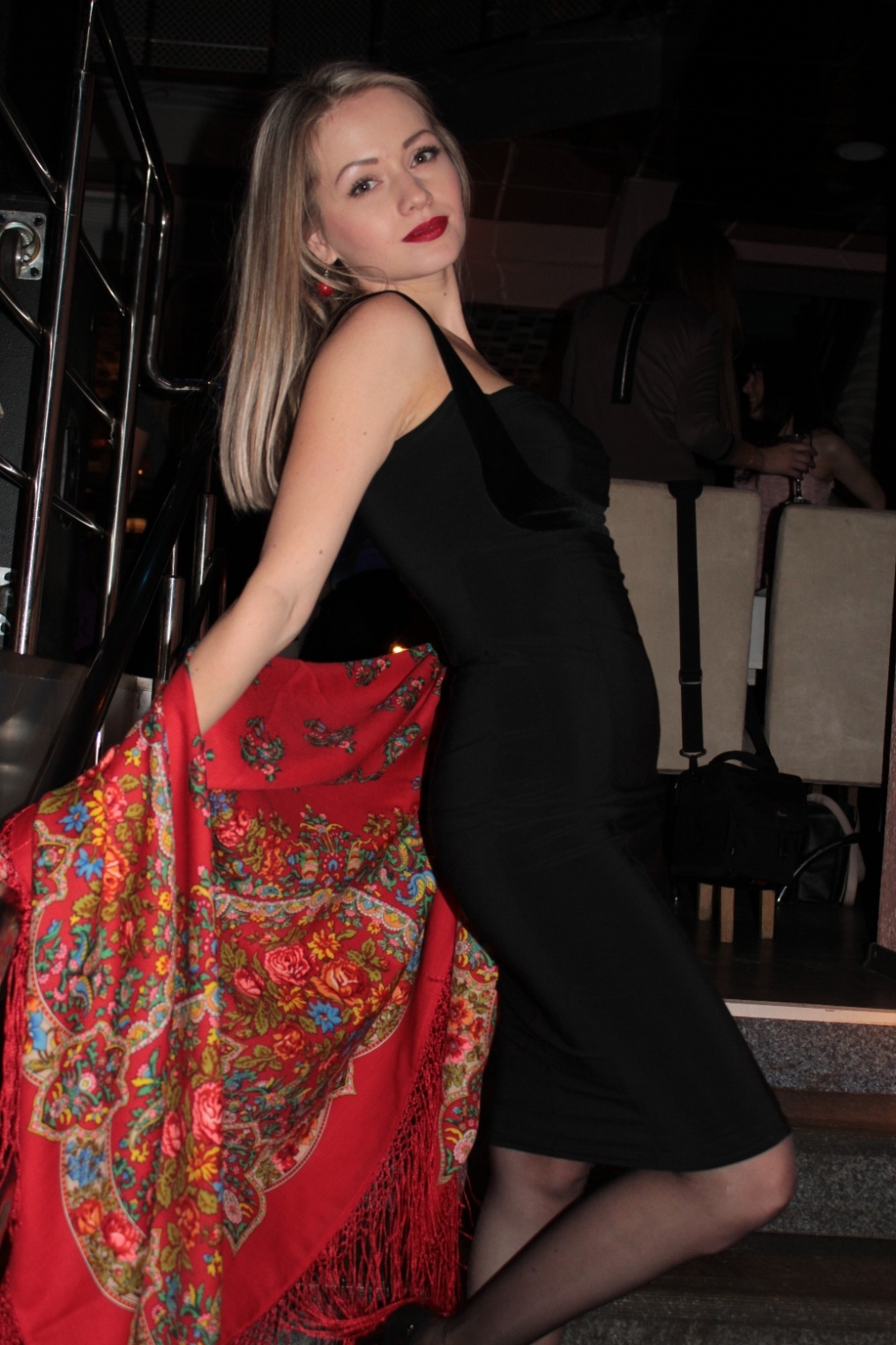 Ваши фотографии просто супер,а как гармонично смотрится шаль и маленькое черное платье.И сережки у вас очень красивые в тон к "Медальонам" и помаде. :0: