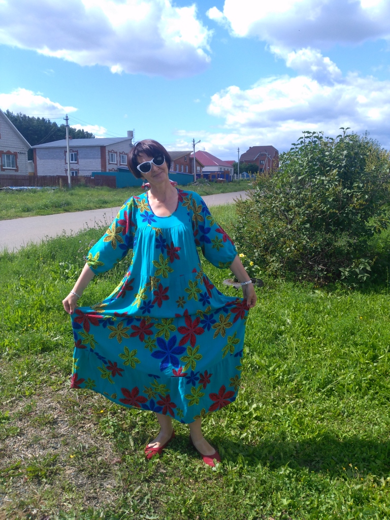 Теперь покажу давно обещанное "марысино" платье. Ношу уже третье лето..В жару очень комфортно.Самые внимательные уже разглядели его на фотографиях с показа народного платья,оно у меня было под сарафаном,вместо нижней рубахи..