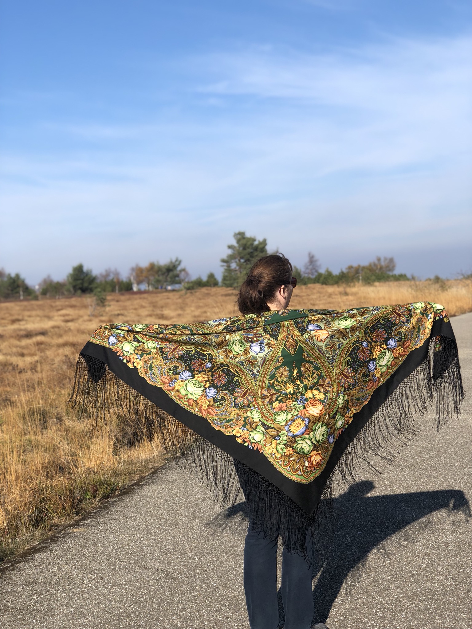 Демонстрируем ношение платков и шалей.