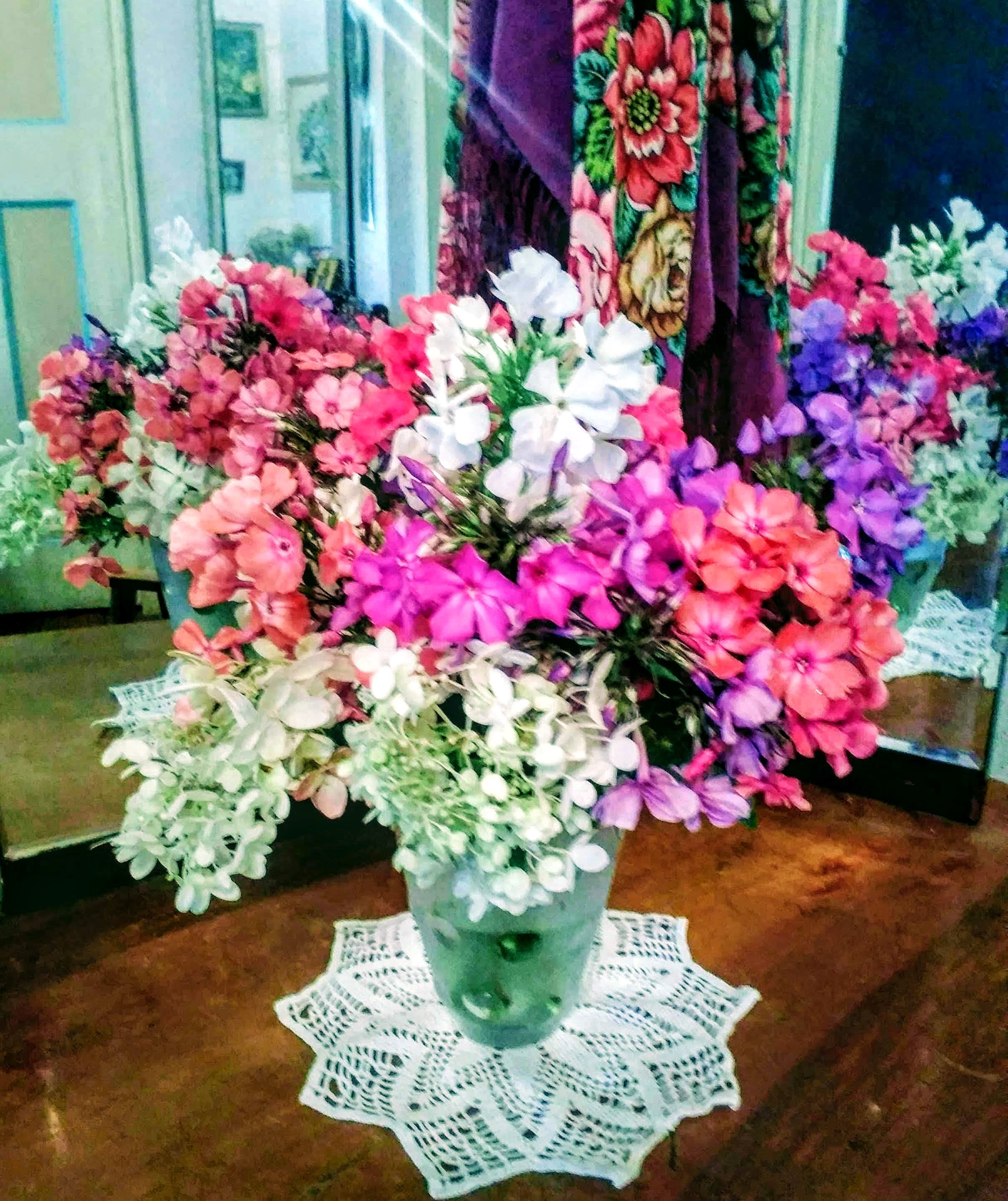 Потом уже появился и серый " у Самовара", и серый "Цветущий сад" и серо-сливочные "Медальоны" -все шали любимы , но не так часто носимы как серая Тайна Сердца. Это мой платок путешественник, с ним легко не просто выйти в люди но и " выбежать" из дома, запрыгнуть в машину и быть потом в дороге несколько сот километров. Вывалиться из машины очумевшей от дороги и выглядеть при этом отлично. Платок как нежная дымка на шее. Очень удачный сбалансированный колорит.