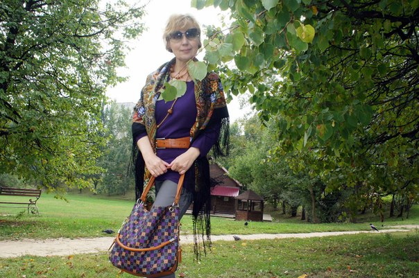 Интуиция ой какое красивое фото с Ненаглядной под рябиной, так солнечно, красочно и сома шаль светится. И с фиолетовым интересно. Действительно сразу она кажется другой. И так не нравится хмурая погода, хорошо что шали и платки это время раскрашивают