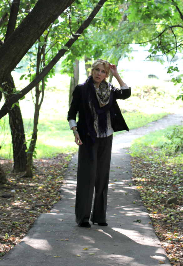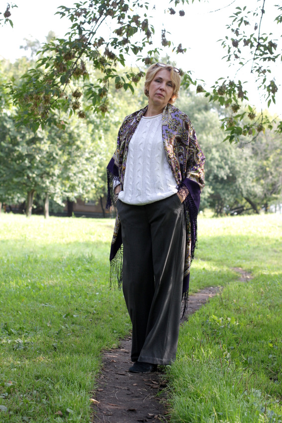 А как желтые цветочки горят в скрутке. :: Фрекен_Жюли, спасибо за прекрасный показ. Образ Нины Александровны создал для меня настроение праздничной шали, а Ваши фото говорят о том, что Единственная хороша и для повседневной носки. И в пир и в мир, как говорится. Единственная она, но может быть разной, сохраняя спокойное благородство и шарм.