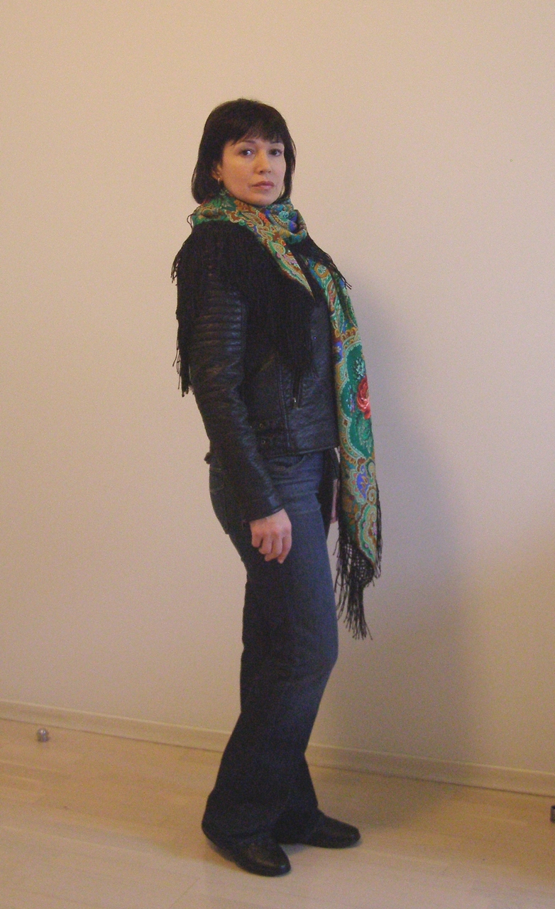 Демонстрируем ношение платков и шалей.