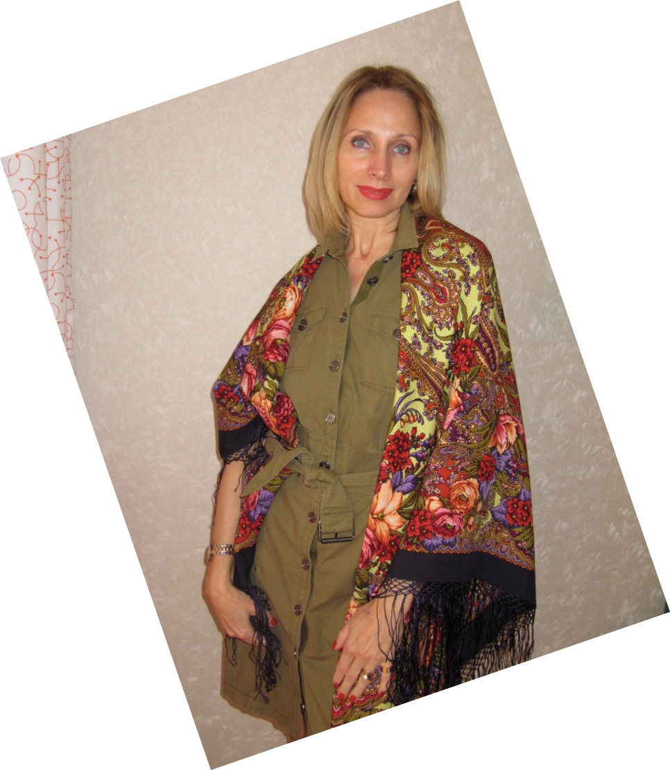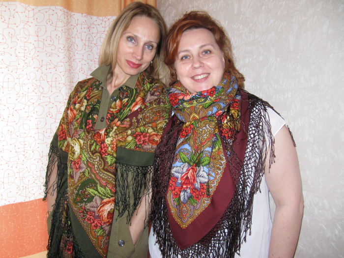 Демонстрируем ношение платков и шалей.