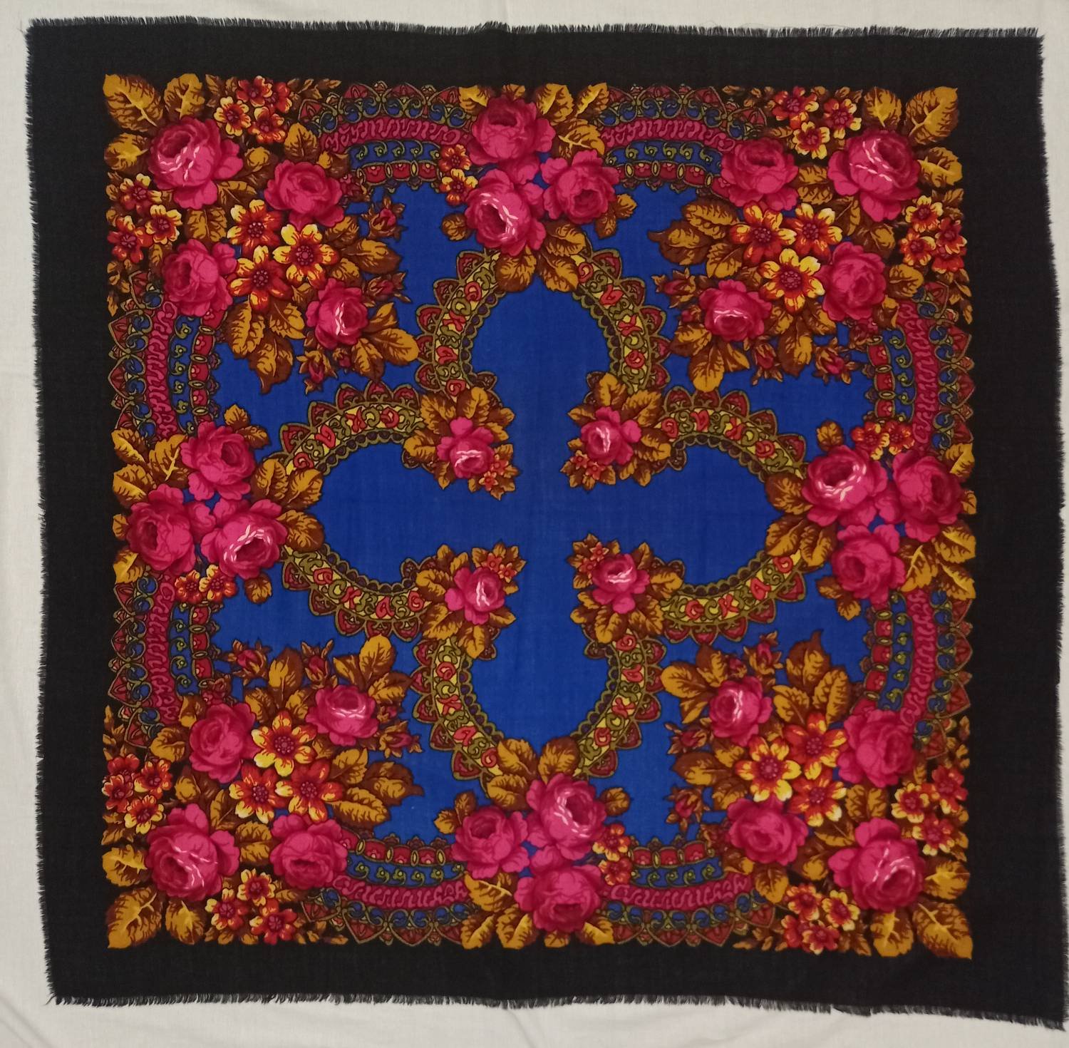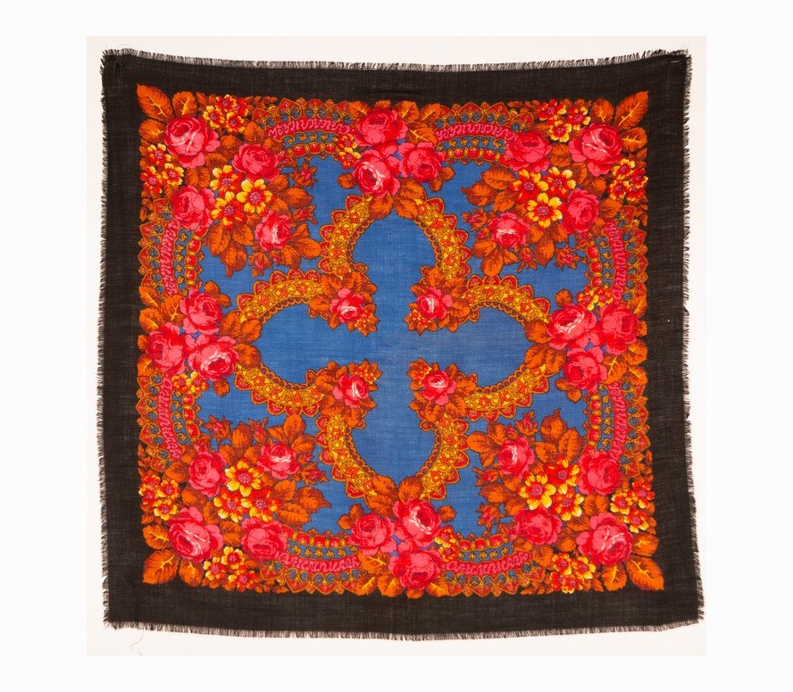 У меня этого платка нет, но Гостья-весна заставила к нему присмотреться повнимательнее. Сразу скажу, разграничить Слащеву и Регунову бывает очень сложно, поскольку это художники разных поколений, возможно наставничество, подражание и т.п. Но тут нам в помощь то обстоятельство, что у Е.П. Регуновой есть большой платок, приуроченный к Олимпиаде 1980 г. в Москве. Это ППД-74 viewtopic.php?f=63&t=14940&p=509327#p509329. Тут уж авторство Регуновой бесспорно. Предлагаю сравнить платок "Олимпиада" с ППД-74 и попытаться выяснить, принадлежат ли оба платка авторству Регуновой.