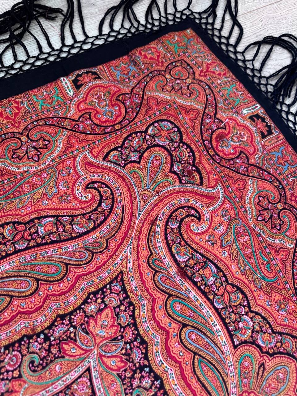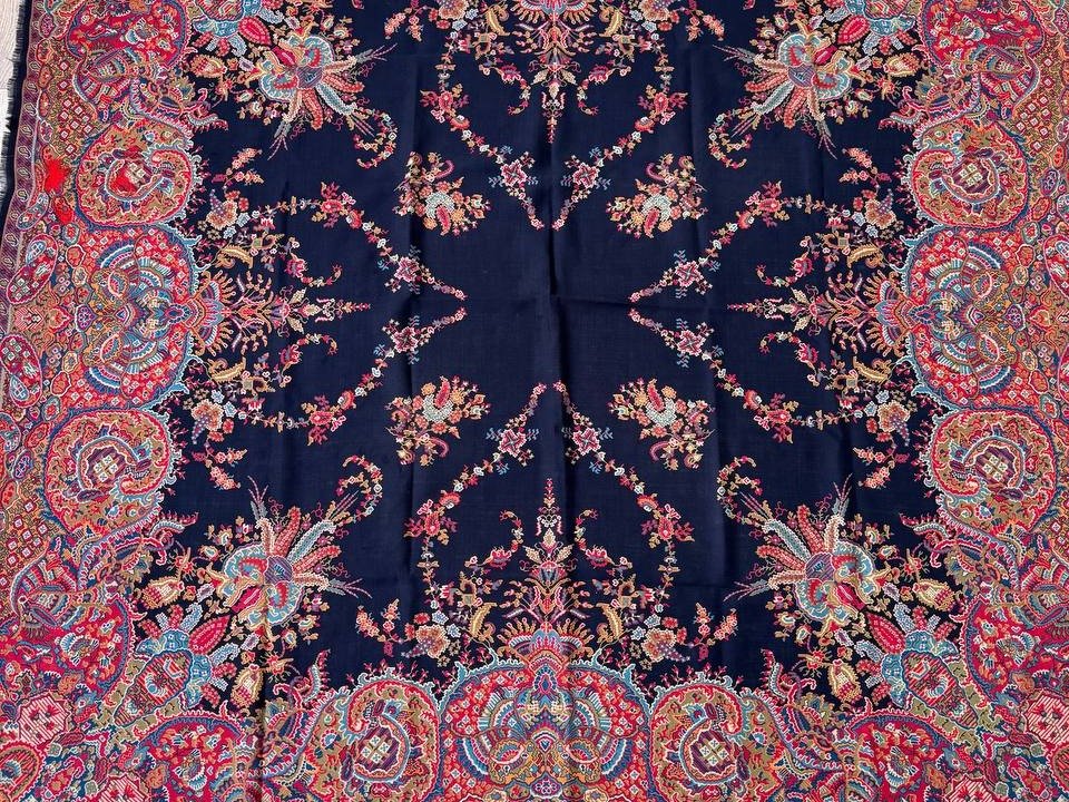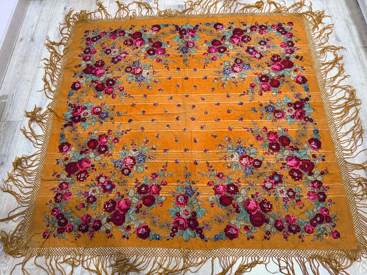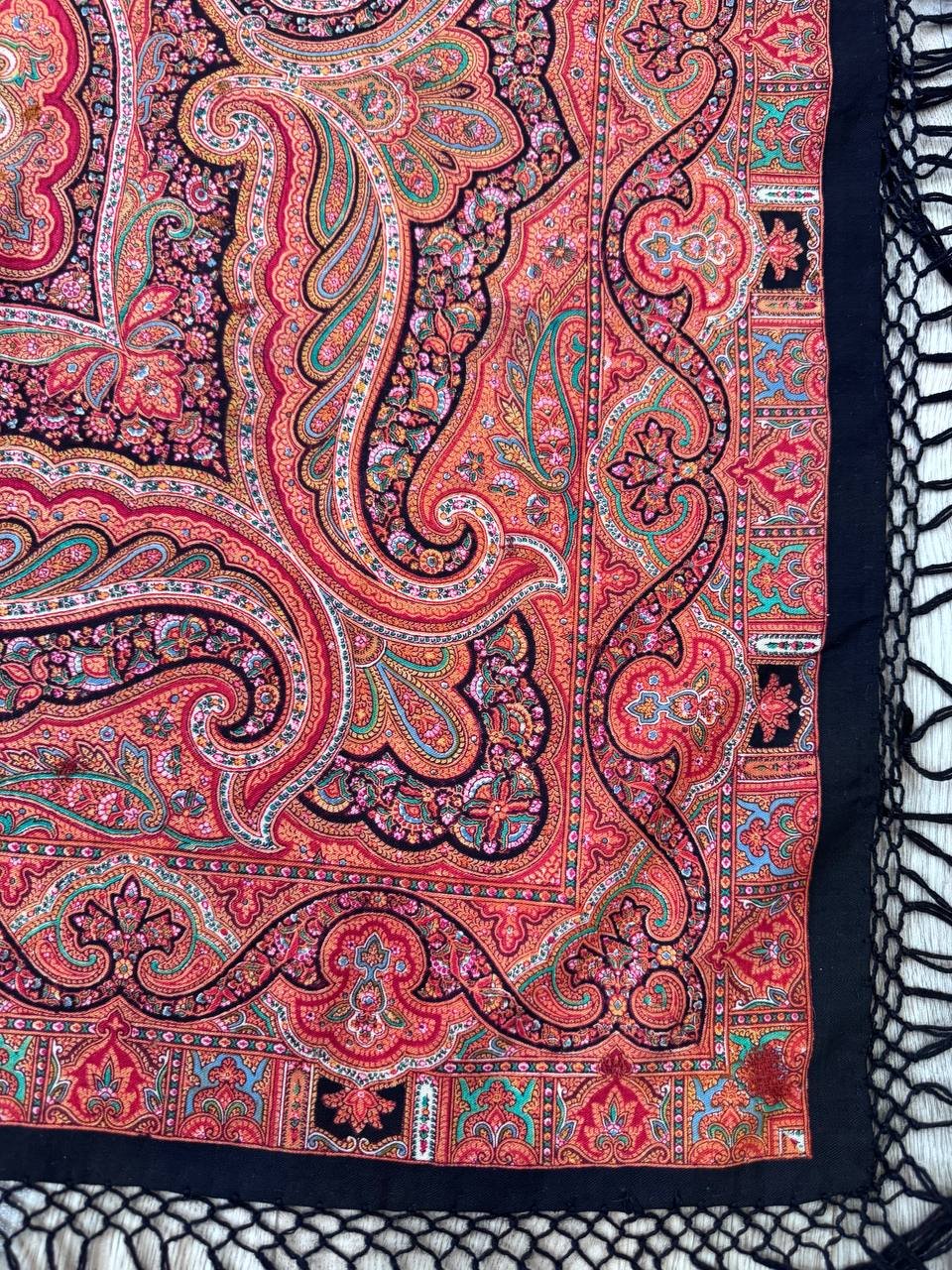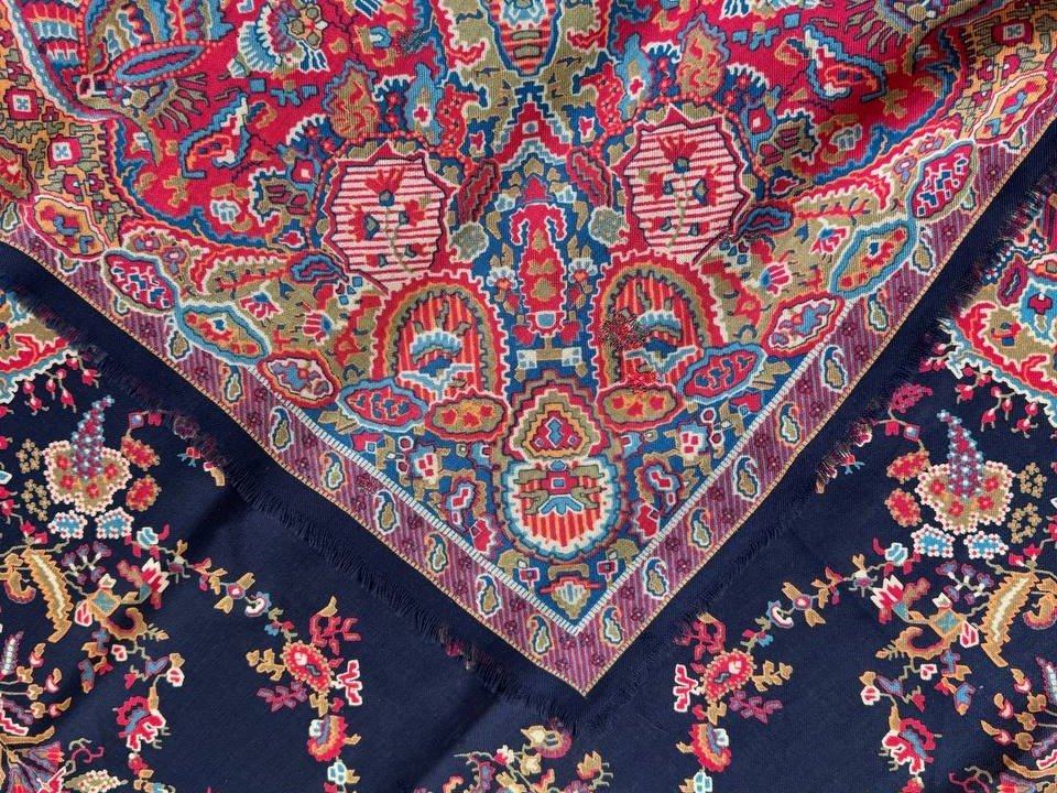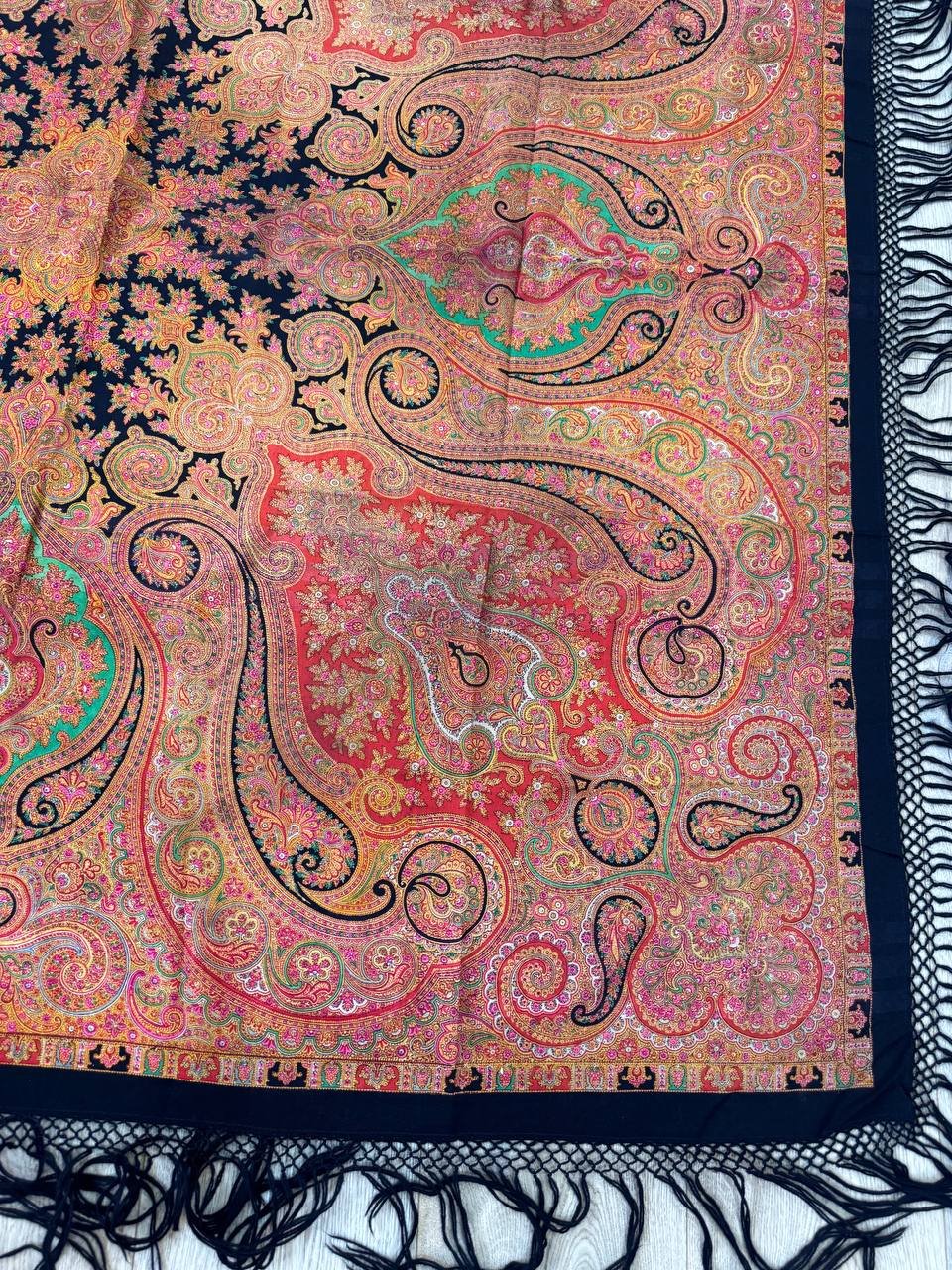 Описание продавца: Дореволюционная шаль с номерным штампом № 92 (конец XIX – начало XX вв.) Такие номера ставились на мануфактурах для учета партий или рисунков в каталогах, что является прямым подтверждением солидного возраста и фабричного происхождения изделия.